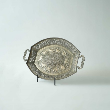 925银雕花果盘(精品)【藏品】40.7*27.6*3.3cm
