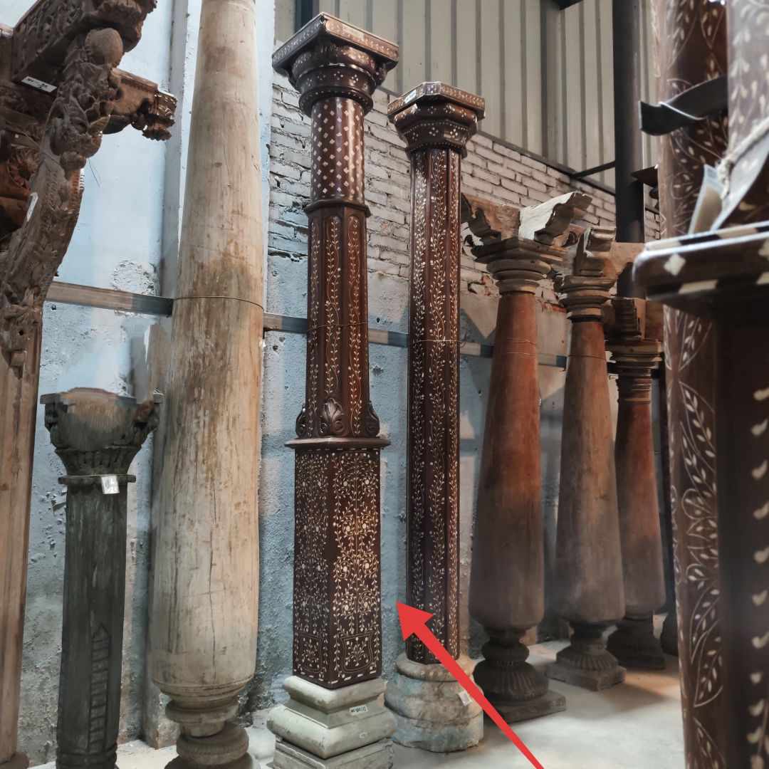 镶嵌雕花木柱31.5*31.5*257cm