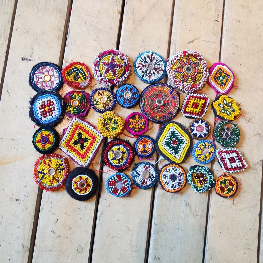 阿富汗手工老绣片串珠太阳盘4*4cm