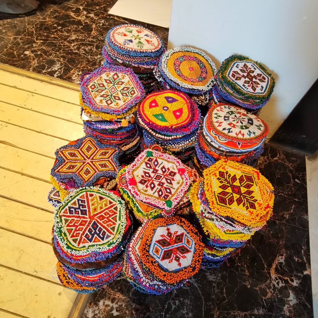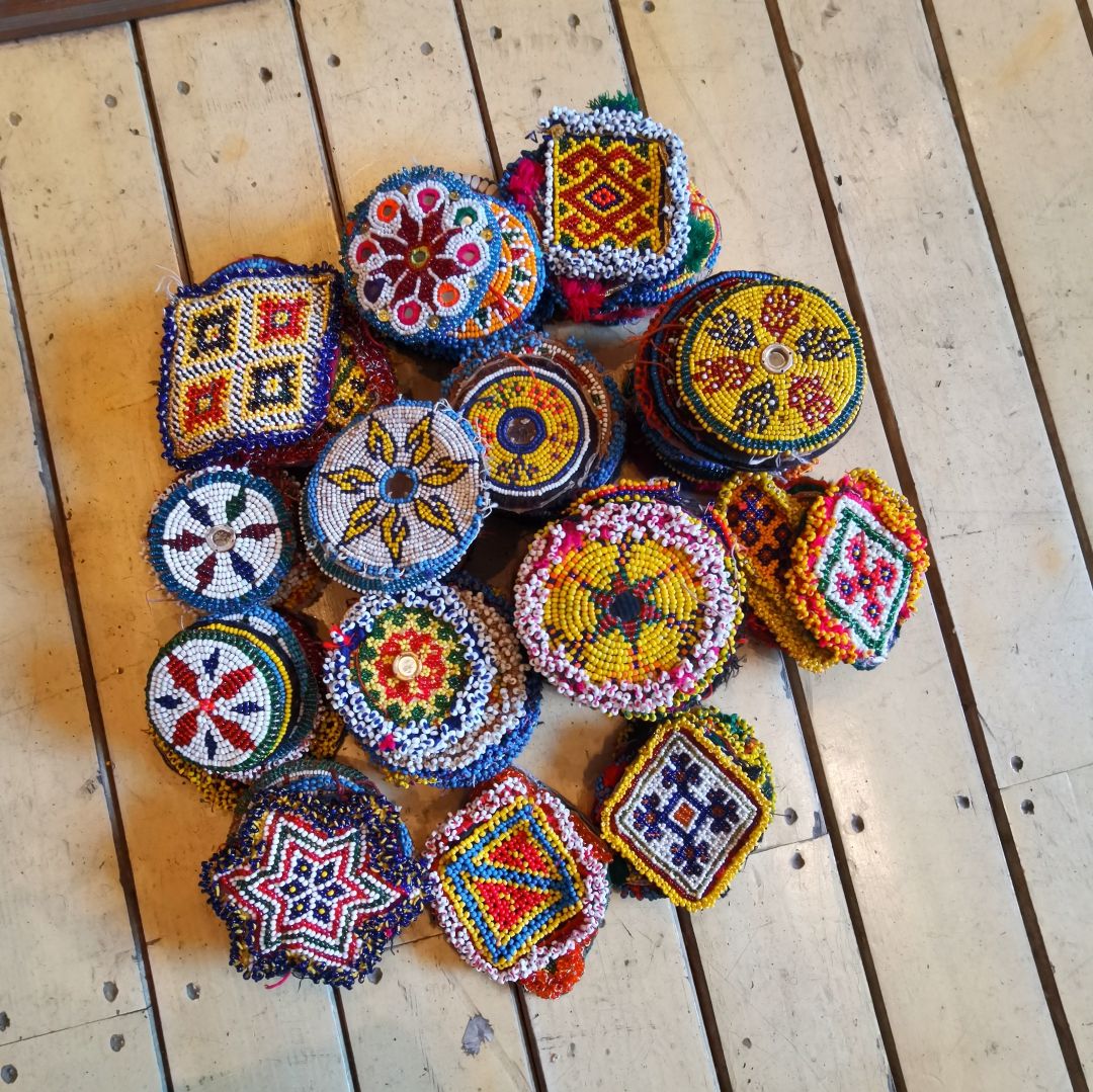 阿富汗手工老绣片串珠太阳盘杯垫10*10cm