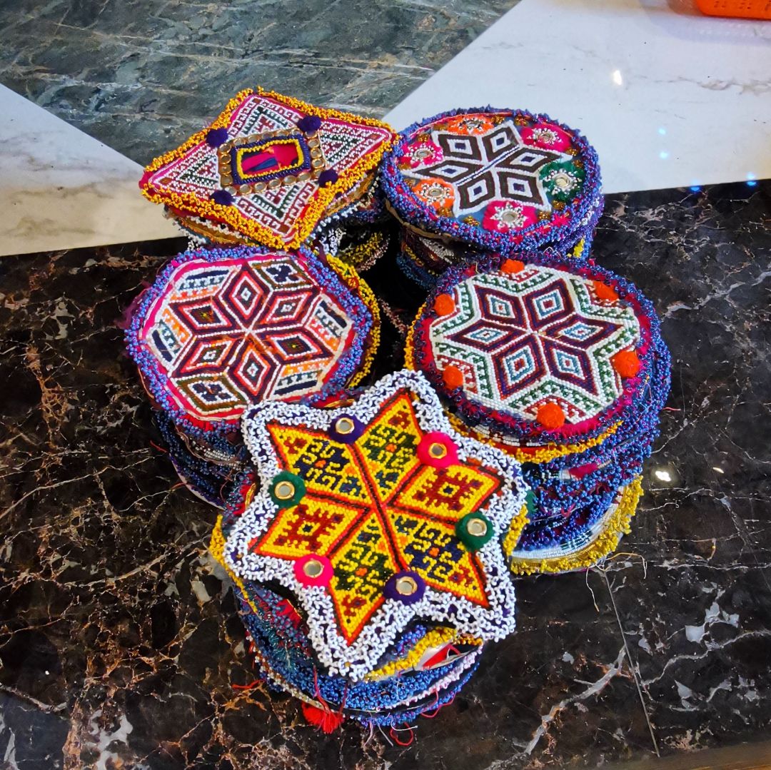 阿富汗手工老绣片串珠太阳盘杯垫6.5*6.5cm