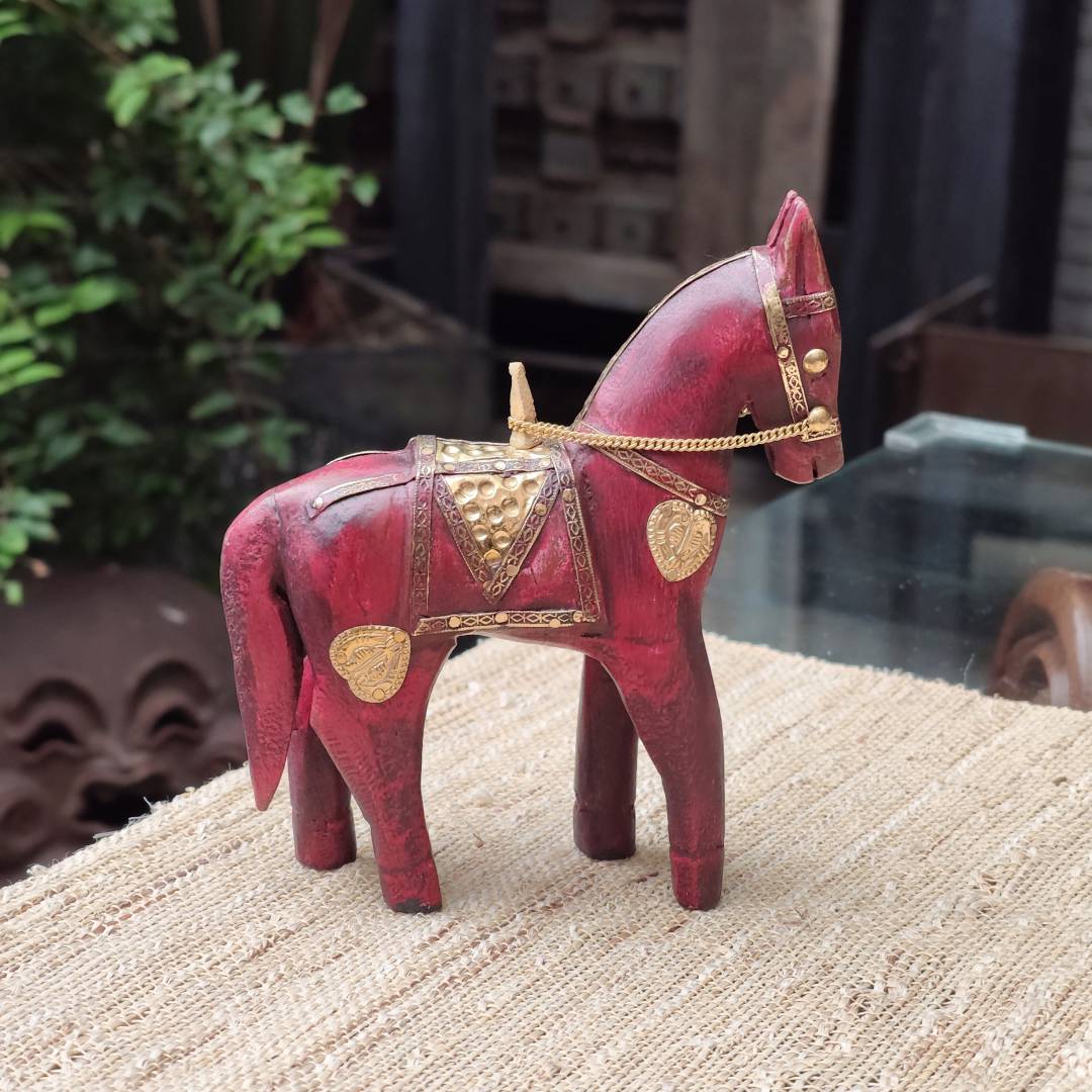 嵌铜片马摆件18*5.5*20.2cm