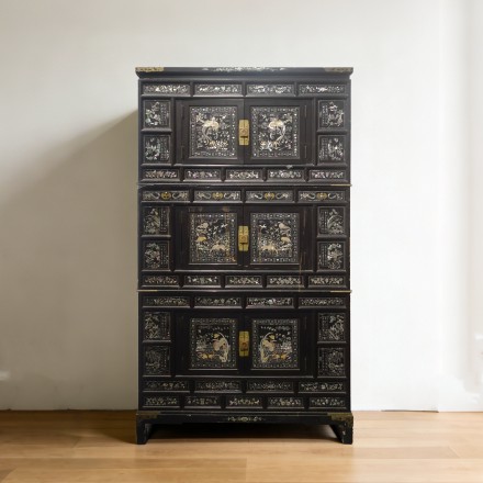 老木嵌铜片彩绘边柜储物柜衣柜95*48*182cm