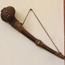 刚洞,藏语又称冈林、扎令,汉族称法号、喇嘛号,从古代角类乐器演变而来,是藏传佛教的法器之一。外形与大牛角相似,是名副其实的腿形号角,多由三节组成。法号的音阶只有三个音,非常原始。粗犷雄浑的音色十分独特,用以表现宗教神圣不可侵犯的威严。