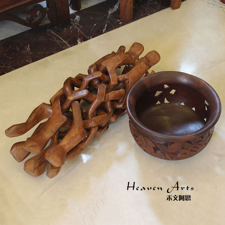东南亚饰品柚木装饰碗摆件创意客厅玄关茶几桌面钥匙收纳碗工艺品11*9*5cm