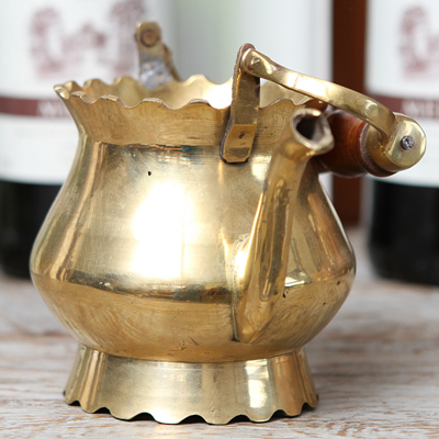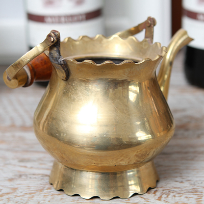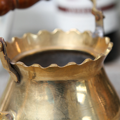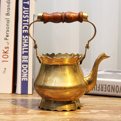 造型经典的铜壶融入时尚的元素,在简约的设计中给人雅致感受。光可鉴人的金黄色调是此款印度铜壶的闪耀标志,在柔软细腻的线条中给人民族风的美感。壶口和底座的波浪形花边,为铜壶增添了浪漫之情,搭配造型别致的壶把,有一种来自异国的脱俗气质。