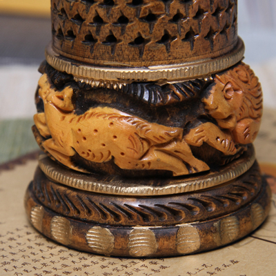 黄杨木、瓜子黄杨,为常绿乔木,在我国黄杨木的生长范围较广,但是因为生长缓慢,耐修剪,抗污染,常见的多为盆栽。黄杨木的香气很轻,很淡,雅致而不俗艳,是那种完全可以用清香来形容的味道,并且可以驱蚊,另外,黄杨木还有杀菌和消炎止血的功效,在黄杨木生长地的山民,就有采黄杨叶用做止血药和放置黄杨树枝来驱蚊蝇的习惯。 黄杨木在古典家具中有着很微妙也很特殊的位置,我们看到的黄杨木作品多为工艺品摆件,基本上没有家具成品,在古典家具的使用中多用来点缀,因为生长缓慢,黄杨的木质极其细腻,肉眼看不到棕眼(毛孔),但仍因黄杨生长缓慢,难有大料,多用来与高档