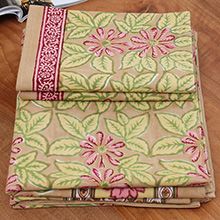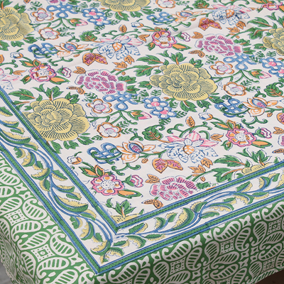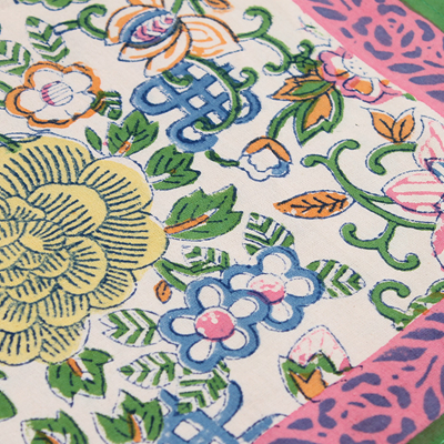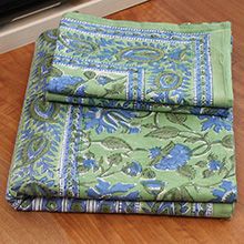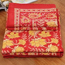 来自印度的床上用品三件套沿袭了印巴布艺鲜艳浪漫的主题,选用印度当地优质棉花制作而成。不同的色彩,不同的鲜花在床单、枕套上绽放,浓烈的花纹设计能瞬间吸引目光。印度人喜欢鲜艳的色彩,喜欢繁复的花纹,从此套床上品味可见一斑,花纹绚丽多姿,营造的风味有点点田园气息,更多的是在表现印巴风情的热情与浪漫。