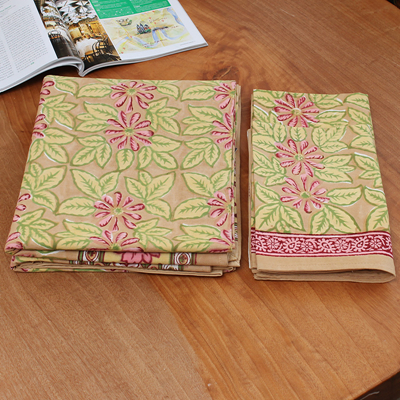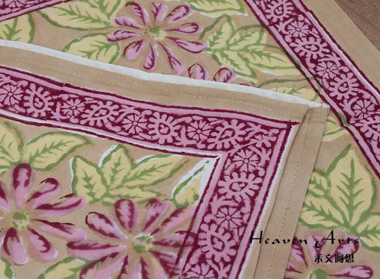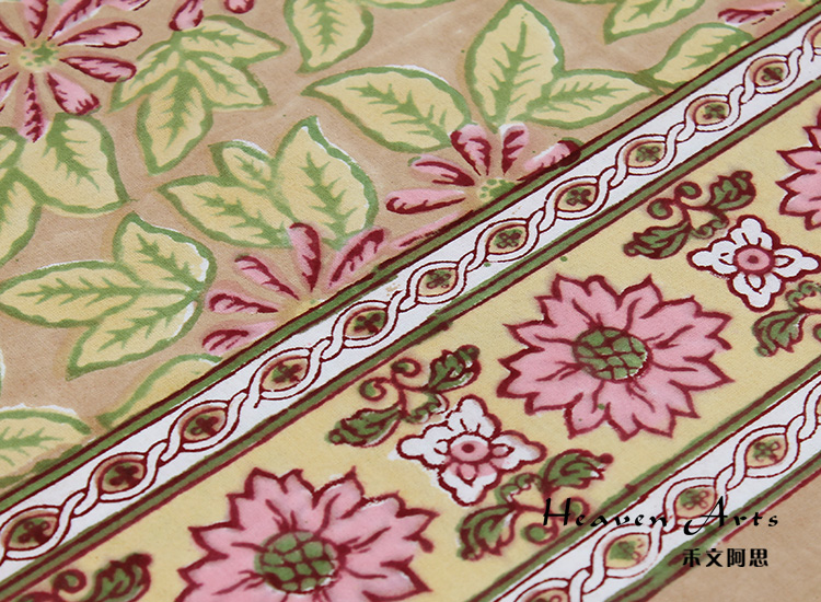 来自印度的床上用品三件套沿袭了印巴布艺鲜艳浪漫的主题,选用印度当地优质棉花制作而成。不同的色彩,不同的鲜花在床单、枕套上绽放,浓烈的花纹设计能瞬间吸引目光。印度人喜欢鲜艳的色彩,喜欢繁复的花纹,从此套床上品味可见一斑,花纹绚丽多姿,营造的风味有点点田园气息,更多的是在表现印巴风情的热情与浪漫。