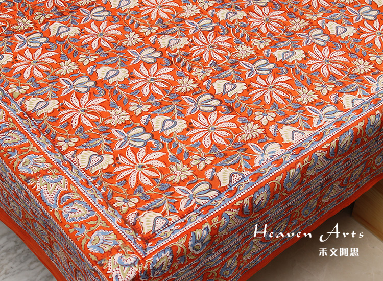 来自印度的床上用品三件套沿袭了印巴布艺鲜艳浪漫的主题,选用印度当地优质棉花制作而成。不同的色彩,不同的鲜花在床单、枕套上绽放,浓烈的花纹设计能瞬间吸引目光。印度人喜欢鲜艳的色彩,喜欢繁复的花纹,从此套床上品味可见一斑,花纹绚丽多姿,营造的风味有点点田园气息,更多的是在表现印巴风情的热情与浪漫。