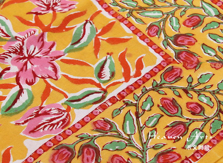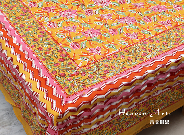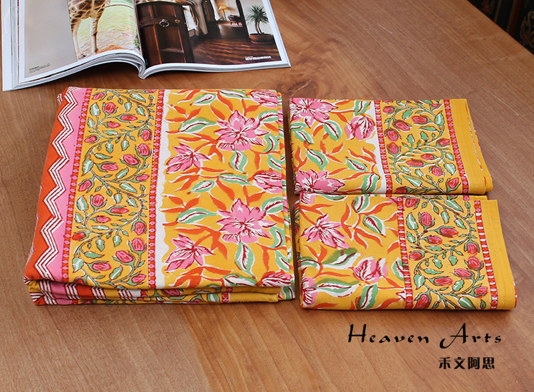 来自印度的床上用品三件套沿袭了印巴布艺鲜艳浪漫的主题,选用印度当地优质棉花制作而成。不同的色彩,不同的鲜花在床单、枕套上绽放,浓烈的花纹设计能瞬间吸引目光。印度人喜欢鲜艳的色彩,喜欢繁复的花纹,从此套床上品味可见一斑,花纹绚丽多姿,营造的风味有点点田园气息,更多的是在表现印巴风情的热情与浪漫。