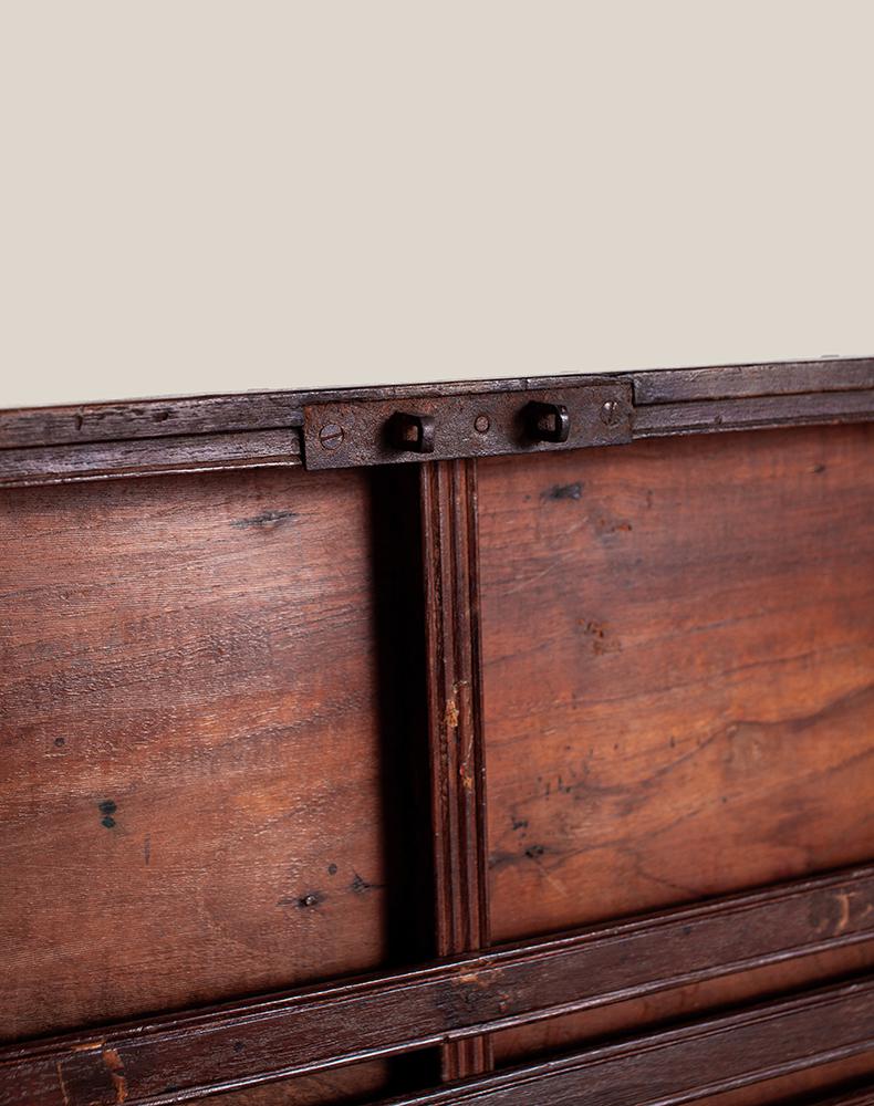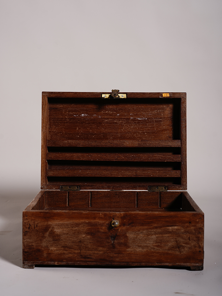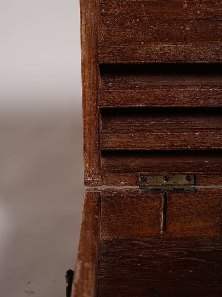 复古风老柚木首饰盒在老柚木岁月沧桑感上进行创作,并镶嵌金色铜片。造型简约的首饰盒上木纹清晰细腻透着古老的韵味,条形的铜片镶嵌首饰盒各个边上,钉出年代厚重沉穆的气息。首饰盒内巧分三部分,左右两边加盖板为独立区域,中央的大区域又细分成一大二长四小的格局。