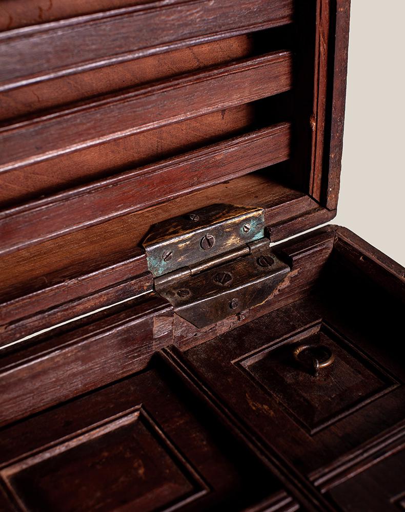 老木雕花首饰盒21.5*10*10cm