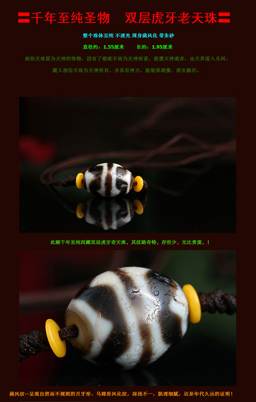 〓千年古韵〓满朱砂至虎牙老天珠-纹路清晰-牙正锋利