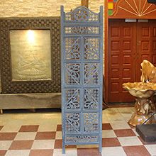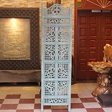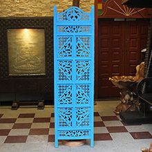 半米宽的单片精雕芒果木屏风,以艺术描绘花卉之叶,凸显出一种和谐宁静之美。双面镂空雕刻的花屏风,彰显着能工巧匠的非凡技艺,同时也赋予了屏风多角度观赏的精致美感。屏风顶上花边造型的宝顶样式,描绘出浪漫的南亚之风。花顶之下方的构图自然清新,方棱之间的十字网格与缱倦叶卉,将自然元素演绎的异常清美。手工雕刻的花卉,搭配镂空精致的雕琢,使稀稀疏疏的光线得以穿透,为芒果屏风蒙上清雅美好的氛围,而多扇屏风搭配使用的效果更甚。