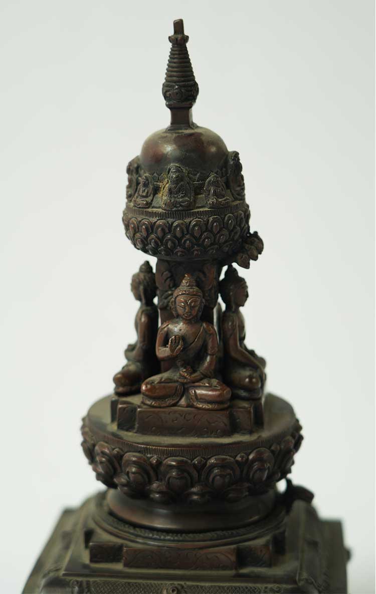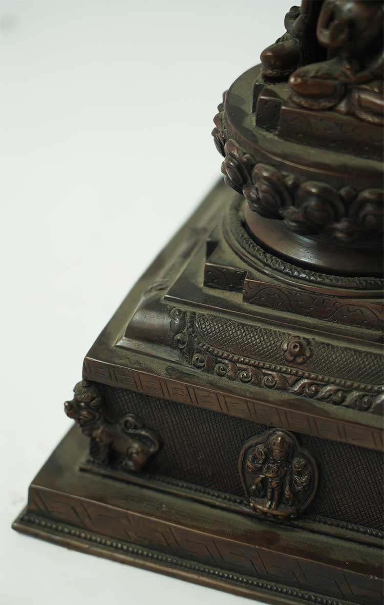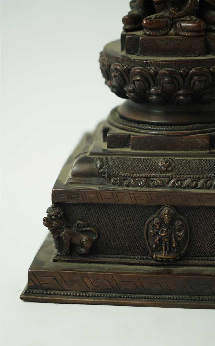 曼陀罗是梵文的音译,意思是坛城,藏语称作"吉廓"。曼陀罗源于古代印度的密宗修法活动,那时的人们为了防止"魔众"的入侵,修密法时就在修法场地修筑起一个圆形或者方形的土坛,在土坛上修法,邀请过去、现在、未来诸佛亲临作证,并在土坛上绘出他们的图像,由此构成了后世坛城的基本框架,演变出多种形式和类别的曼陀罗。坛城作为象征宇宙世界结构的本源,是变化多样的本尊神及眷属众神聚居处的模型缩影。