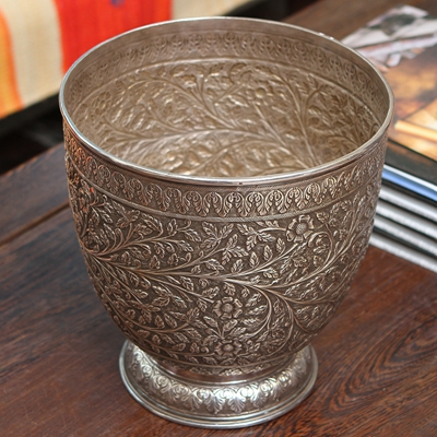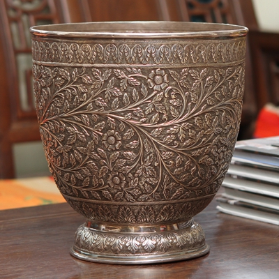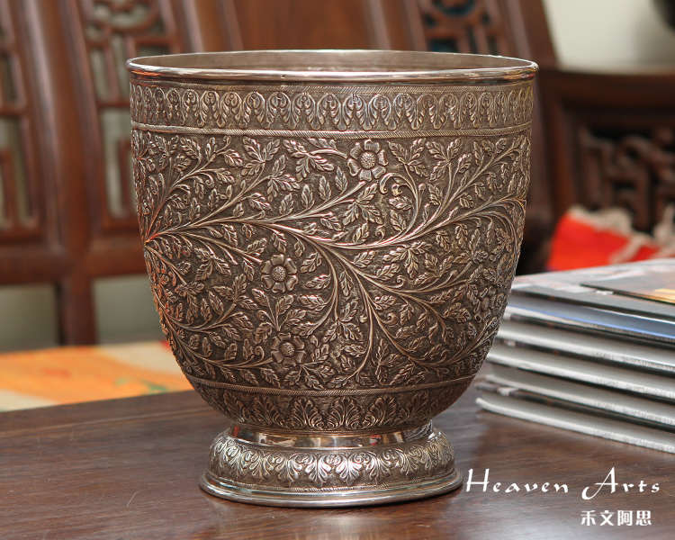 925银雕花花瓶(精品)20.5*20.5*21.5cm