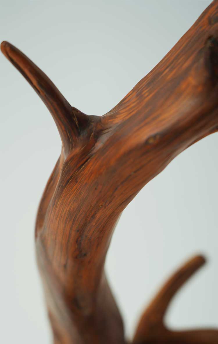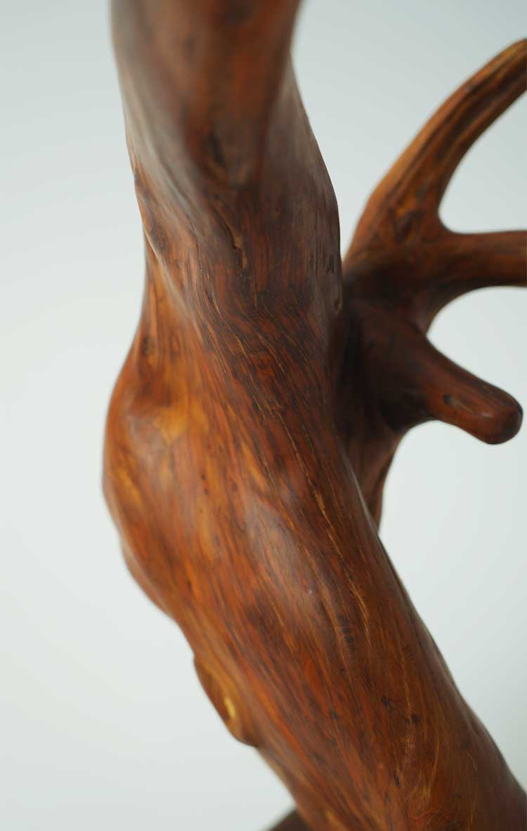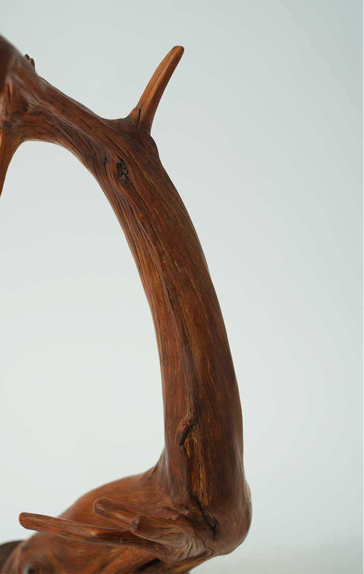 一般来说,业内以崖柏的产地分为太行料、重庆城口料、川料、藏南料等,毋庸置疑的是,最好的料子当属太行崖柏。太行山险峻雄伟,高崖深不可测,岩壁几乎垂直于地面,土壤无法留存于崖壁,所以太行料生长环境复杂,蜿蜒于崖壁之上,因而太行很难出大料。太行崖柏由于天然造型多变,且陈化时间长,密度大、油性足,气味香甜。