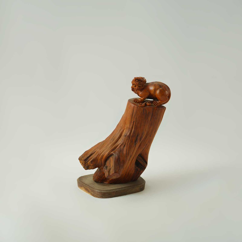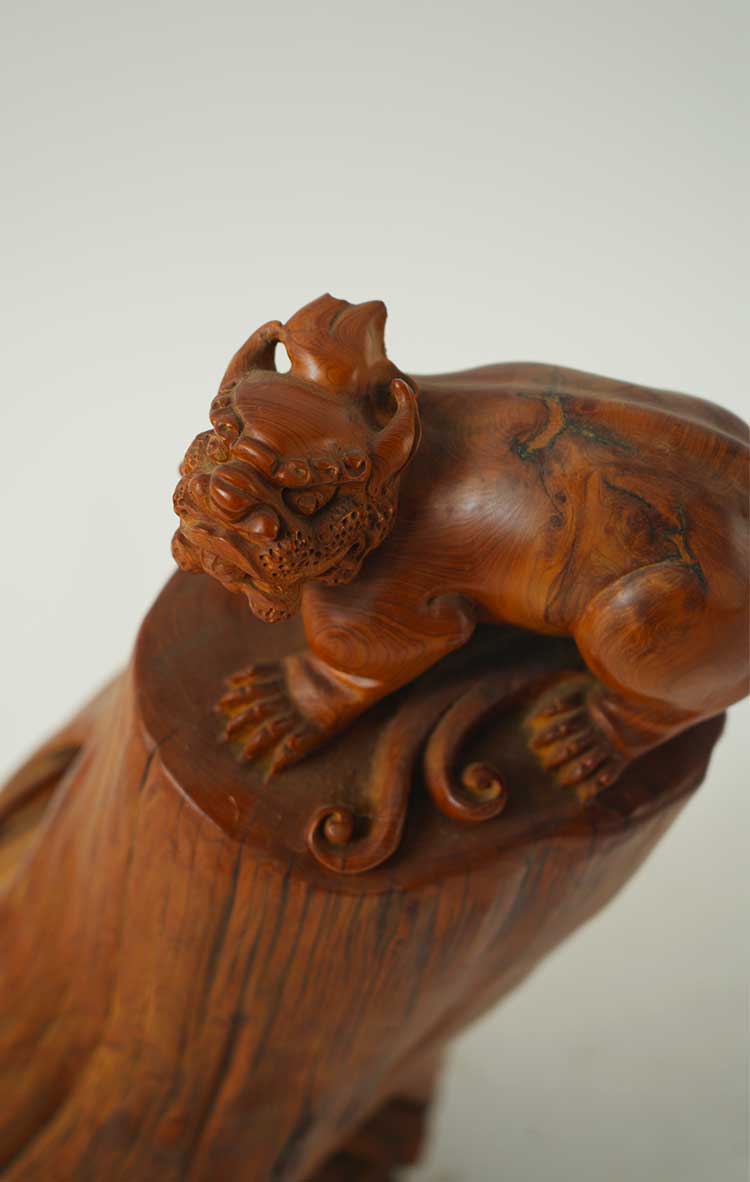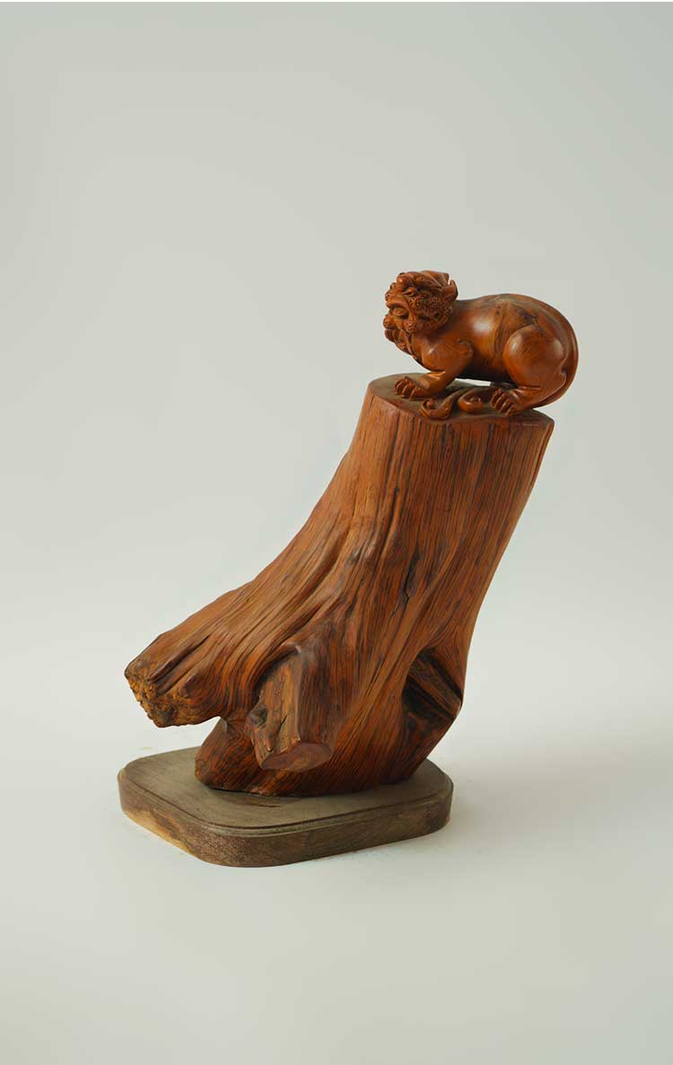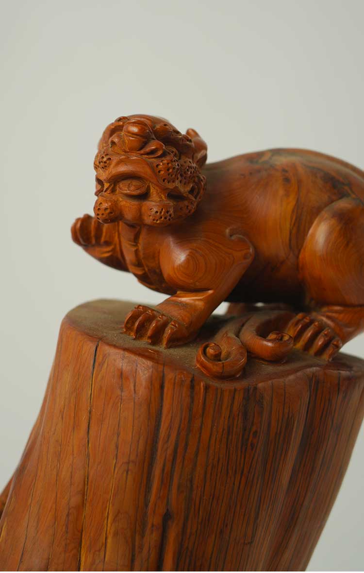 太行虎皮纹崖柏陈化料摆件-貔貅25.5*20.5*46cm