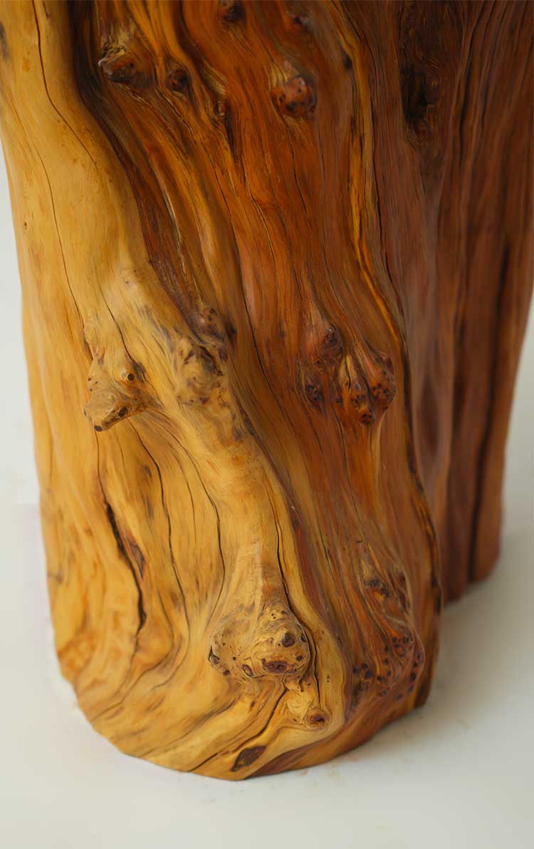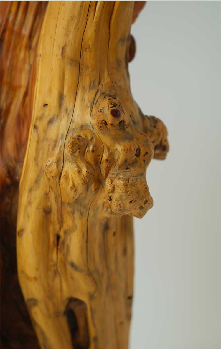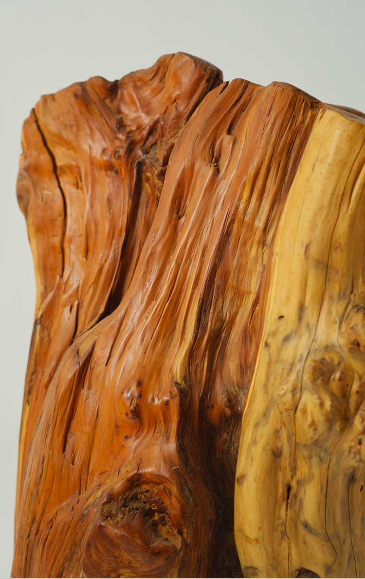 一般来说,业内以崖柏的产地分为太行料、重庆城口料、川料、藏南料等,毋庸置疑的是,最好的料子当属太行崖柏。太行山险峻雄伟,高崖深不可测,岩壁几乎垂直于地面,土壤无法留存于崖壁,所以太行料生长环境复杂,蜿蜒于崖壁之上,因而太行很难出大料。太行崖柏由于天然造型多变,且陈化时间长,密度大、油性足,气味香甜。
