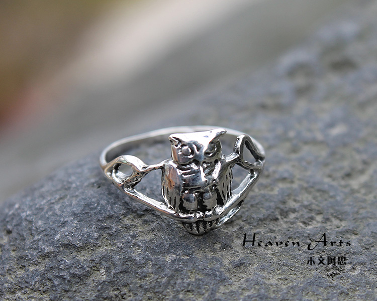 925银猫头鹰戒指