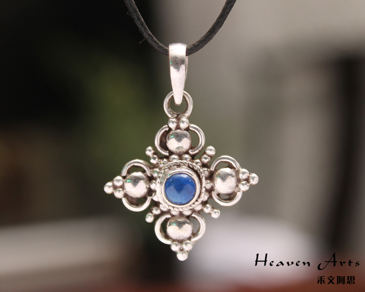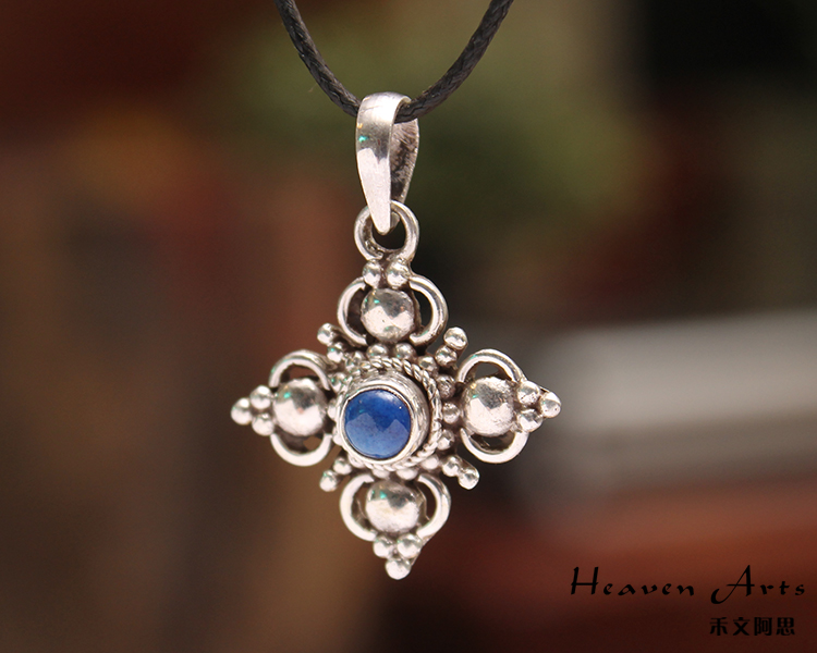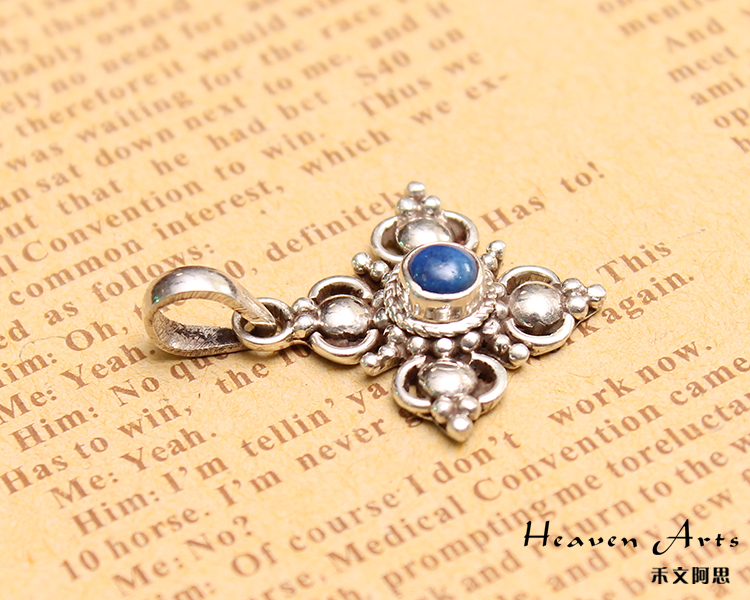 嵌青金石银挂坠