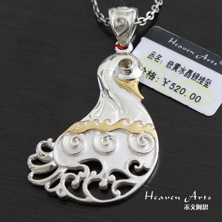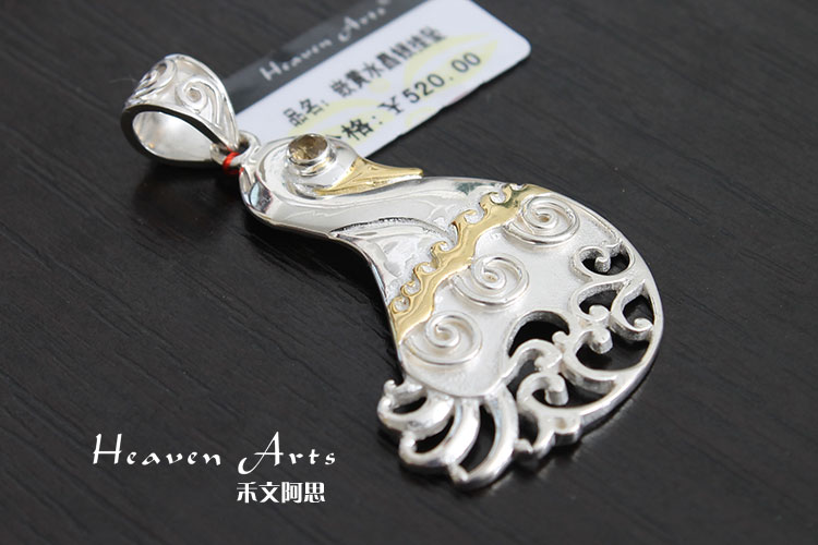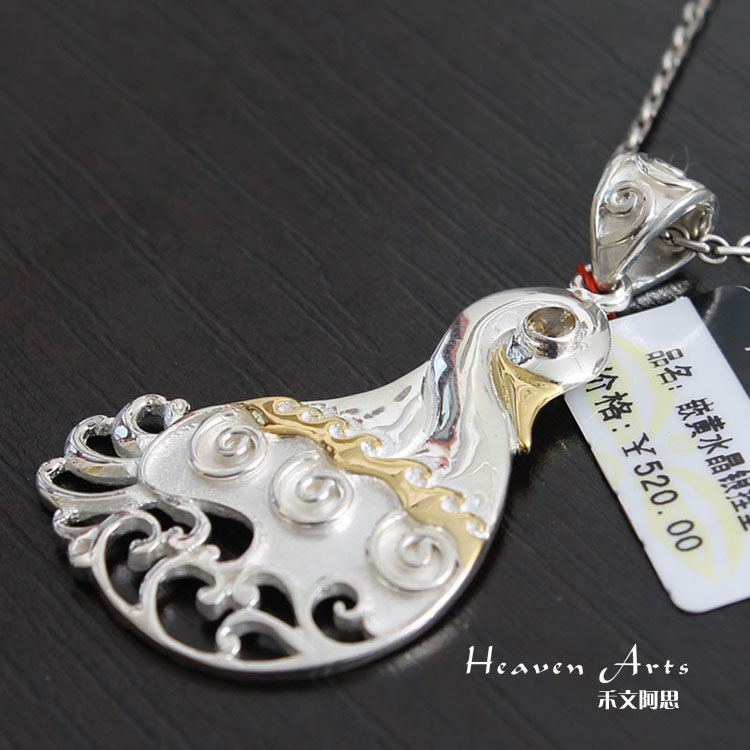 嵌黄水晶银挂坠