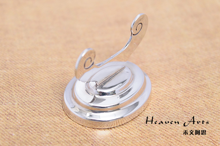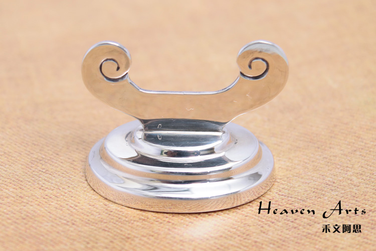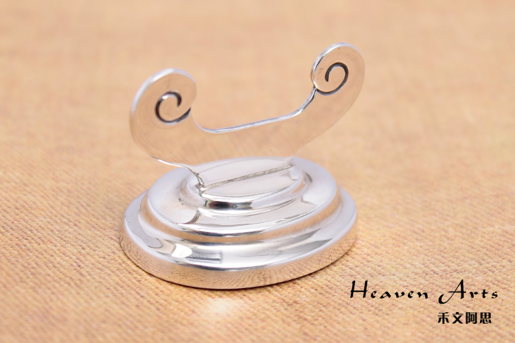 以银打造的此款筷架,泛着哑哑的银色光泽,传统的筷架融入民族元素,洋溢醇厚的古典风味。简单的花纹修饰,衬托出铸造典雅的外观,将它置于餐桌上无疑是奢华贵重的,置于展览柜中是一种别样的文化展示,停放一只毛笔还能打造一份文人墨客的儒雅。