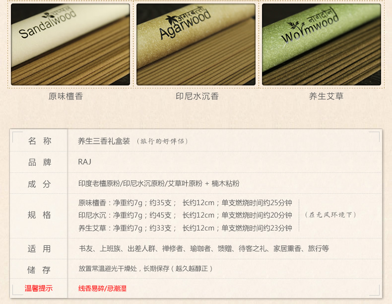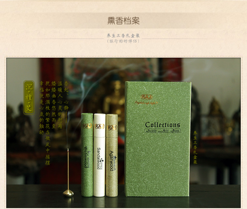 味道:檀香、沉香、艾草,各1筒,共3筒