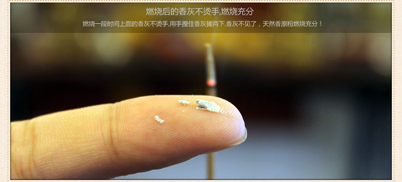 使用:点燃后熄灭明火进行燃烧挥发香味。