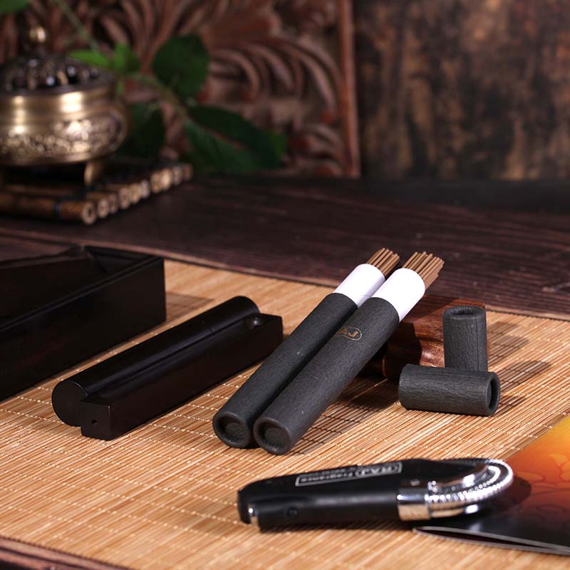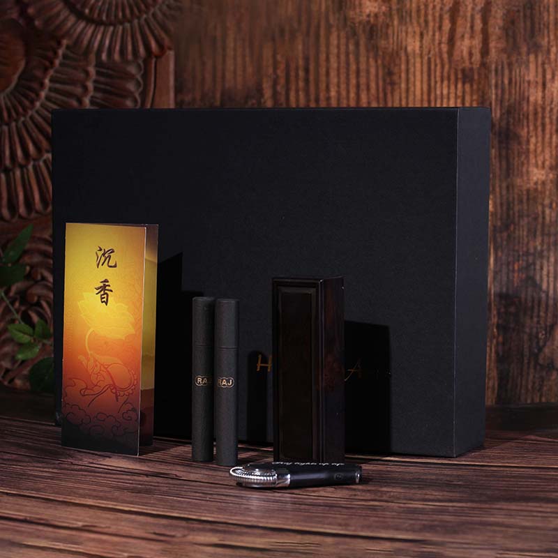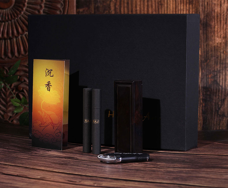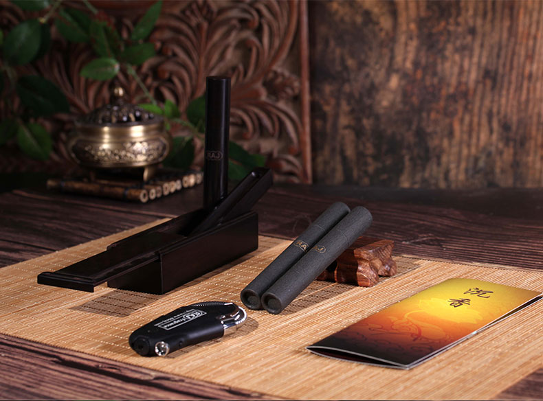 礼盒内明细:线香两筒、紫光檀木随身香炉一个、打火机一个、卡张一张。