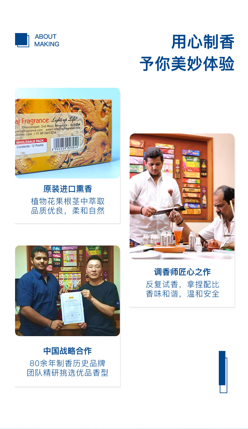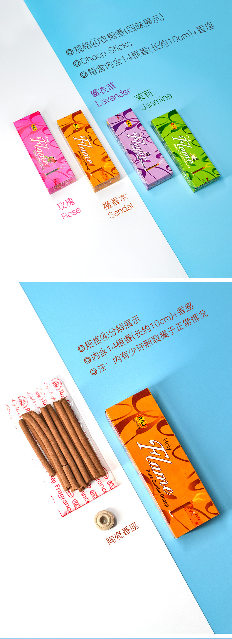 使用:点燃后熄灭明火进行燃烧挥发香味。