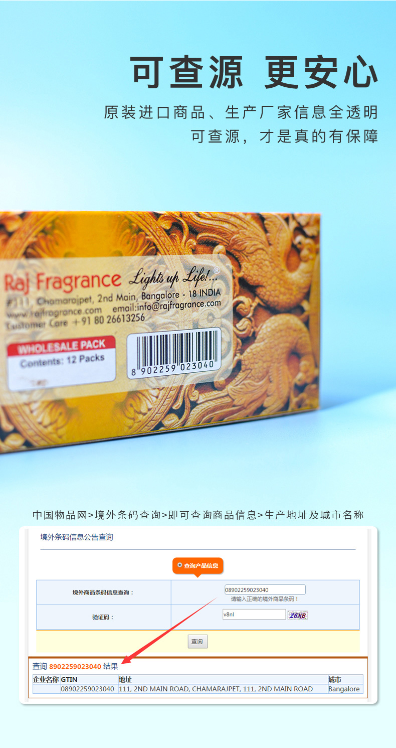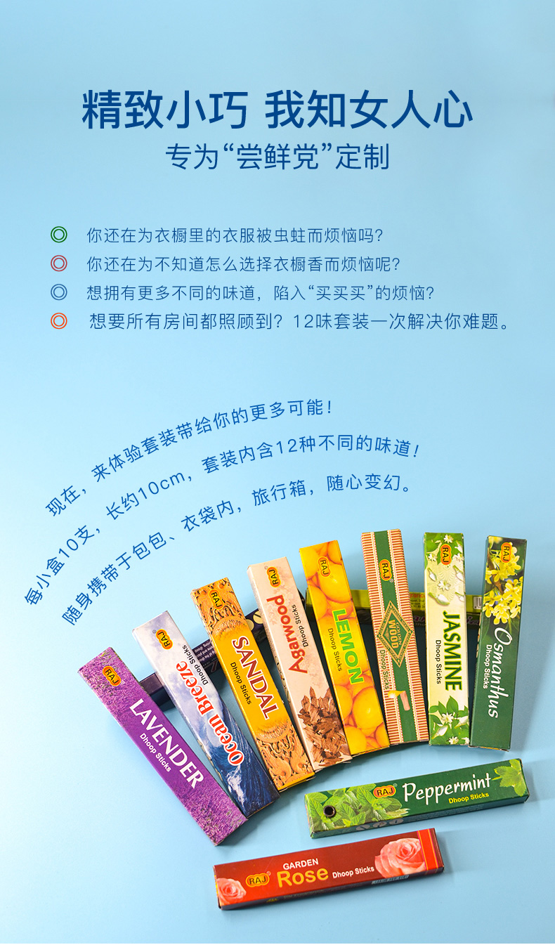 RAJ老塔香达摩香竹枝香(20根x6小盒=120根)