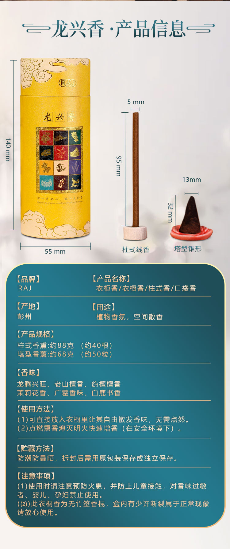 注意事项:在使用时请注意预防火患,并防止儿童接触,对香味过敏者、孕妇禁用。