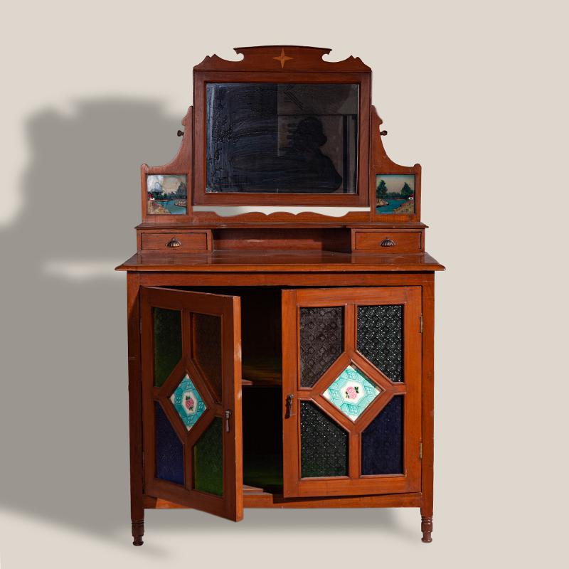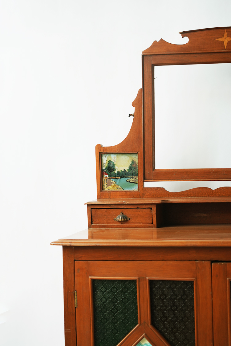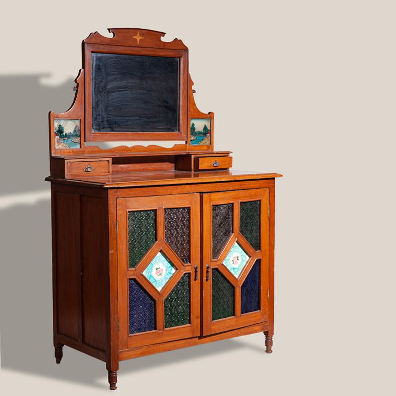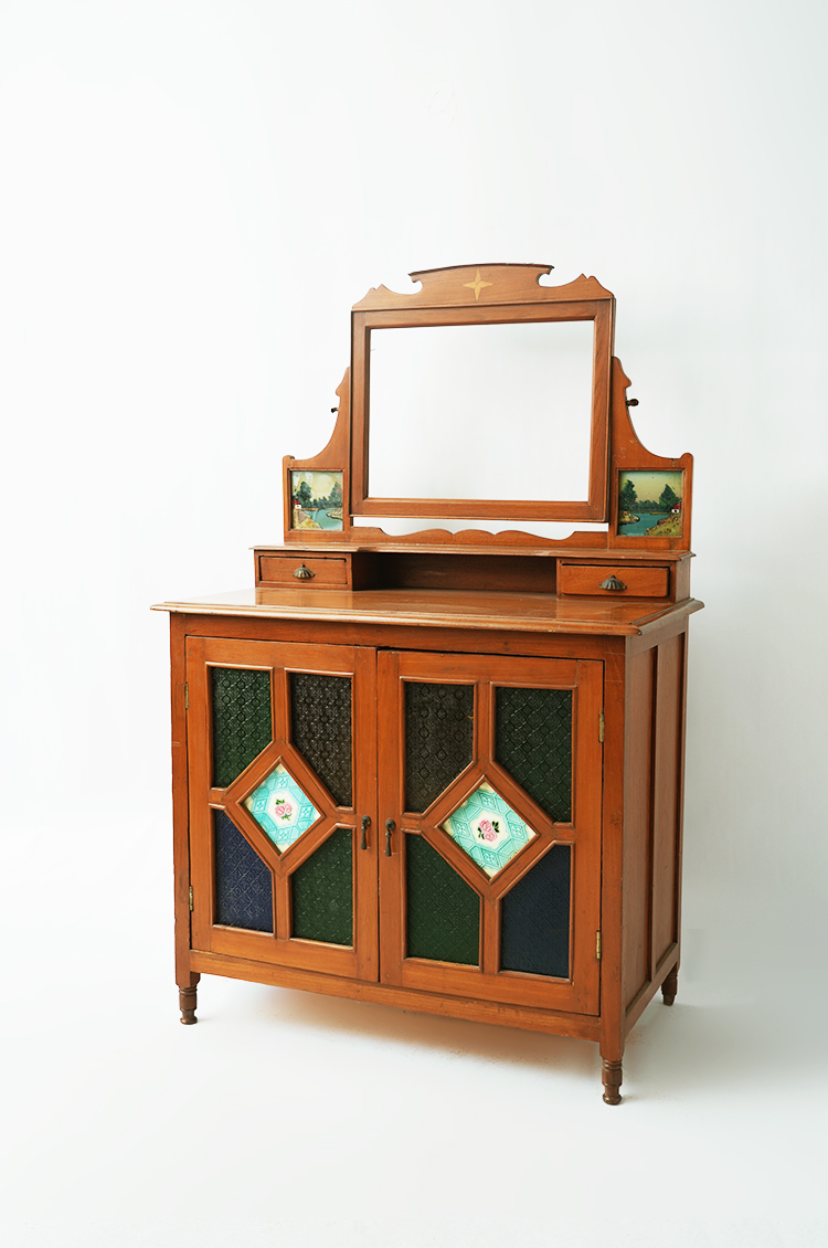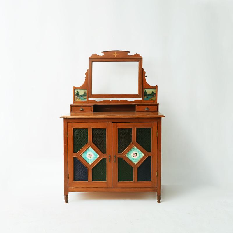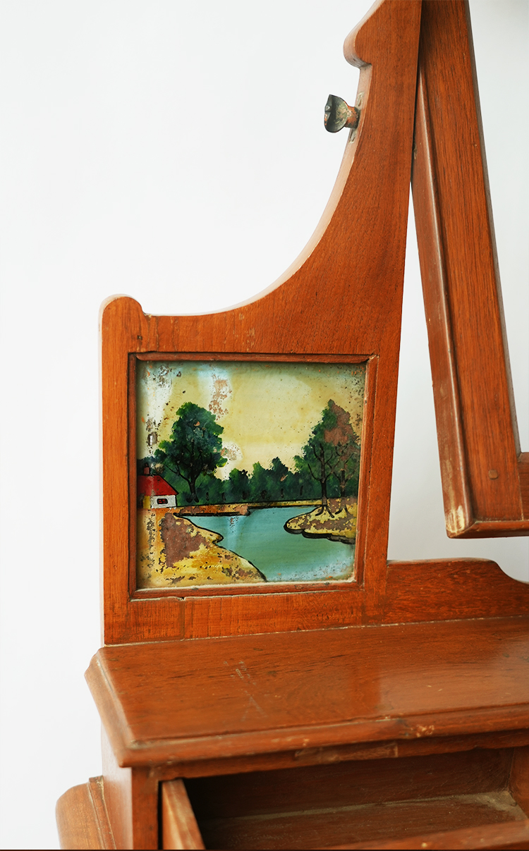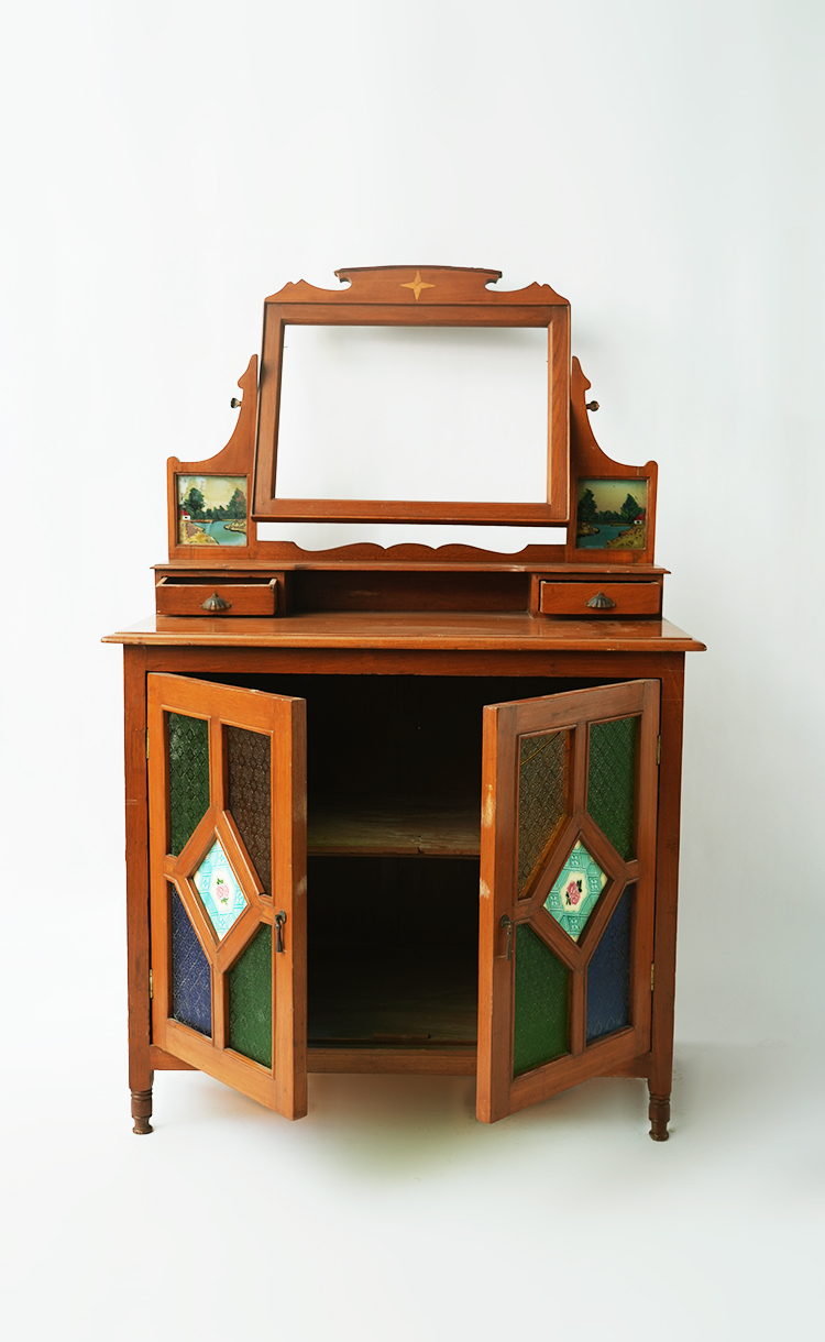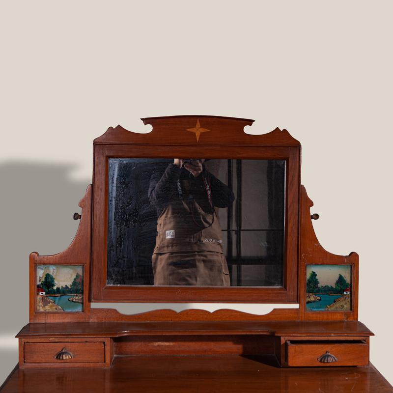 花颜-印度柚木雕花梳妆柜梳妆台镜子带抽屉镂空雕花卧室化妆桌(套)98.5*46*185cm