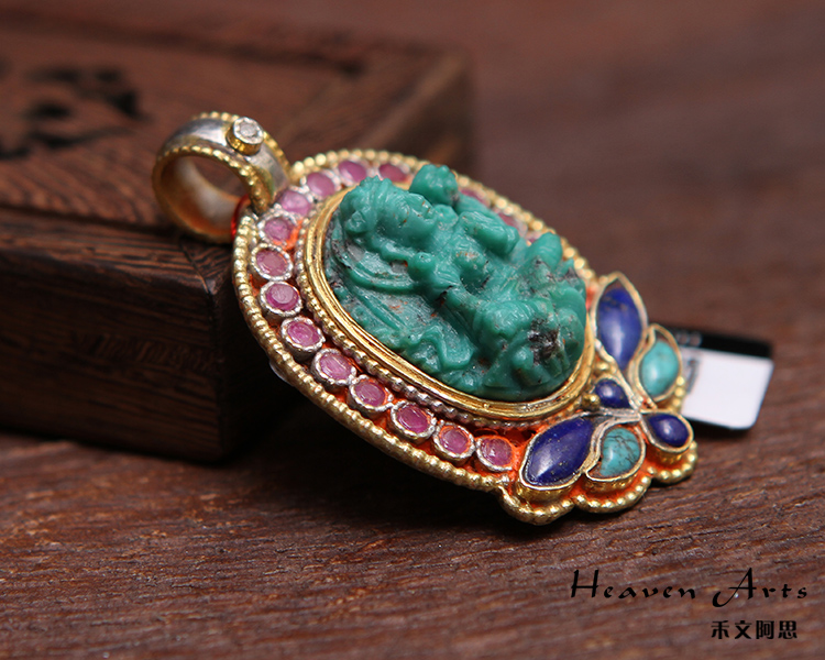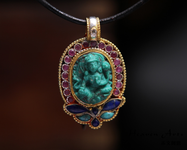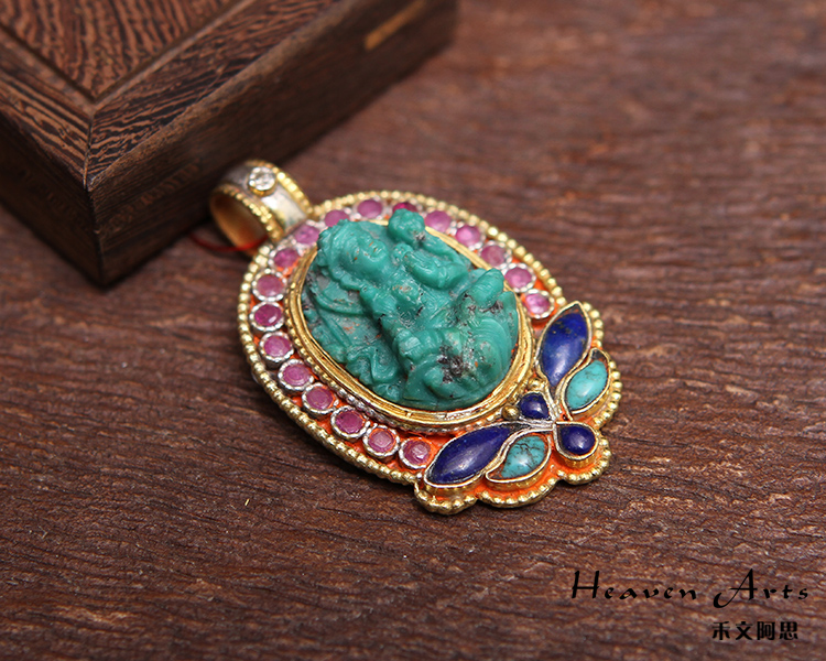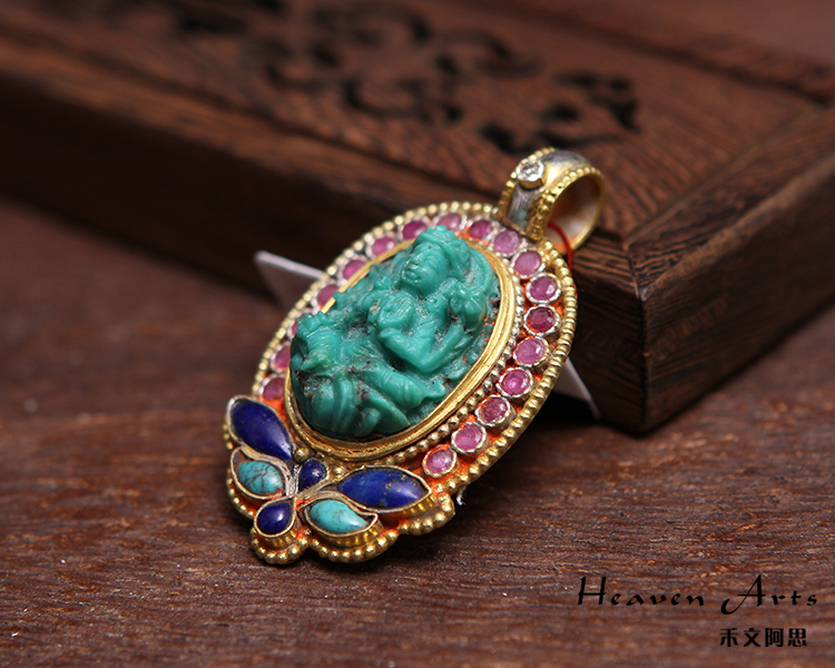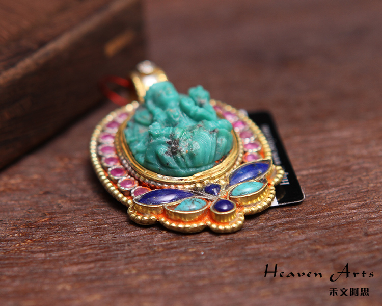 嵌绿松石鎏金挂坠-绿度母(精品)no236