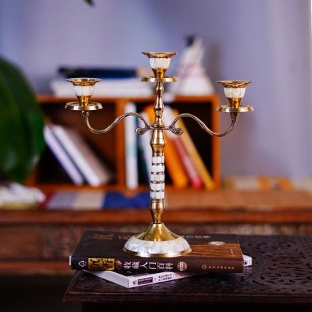 鲜花嵌贝壳黄铜烛台6.8**18.5cm