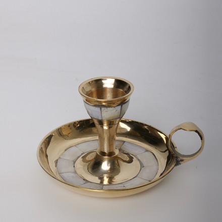 嵌贝壳铜烛台10.4*8.9*6cm