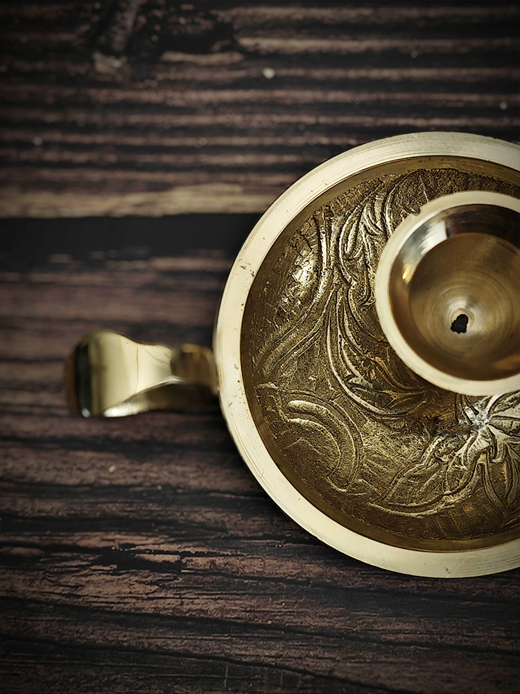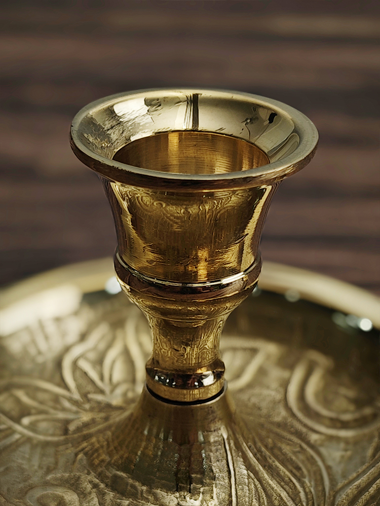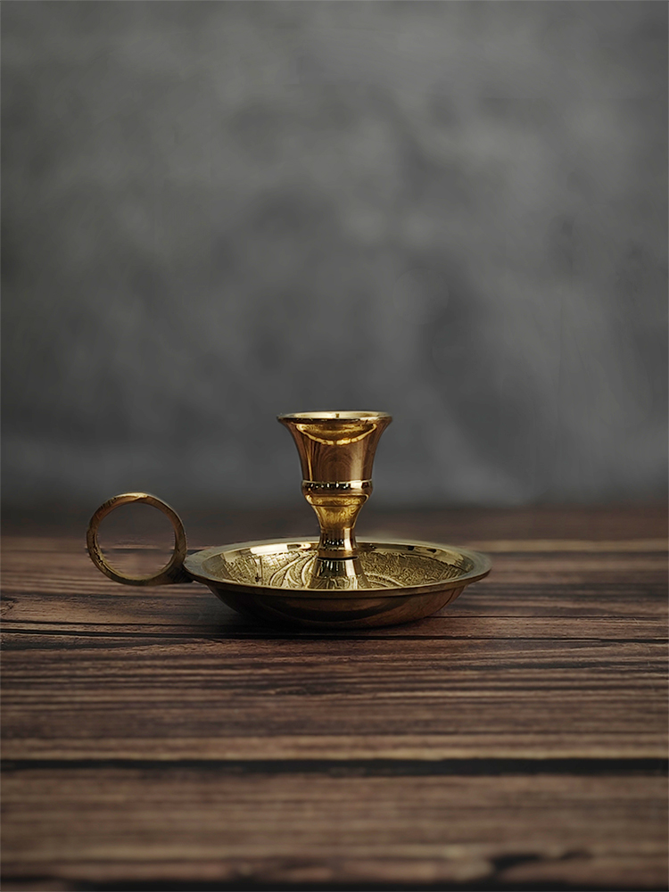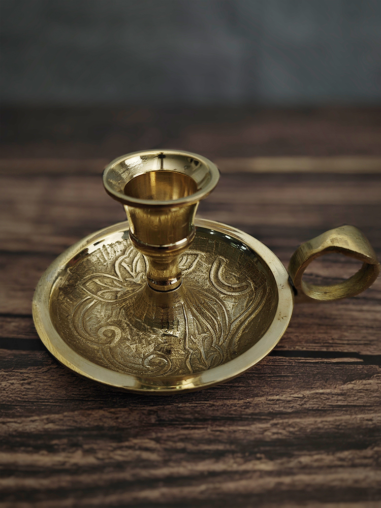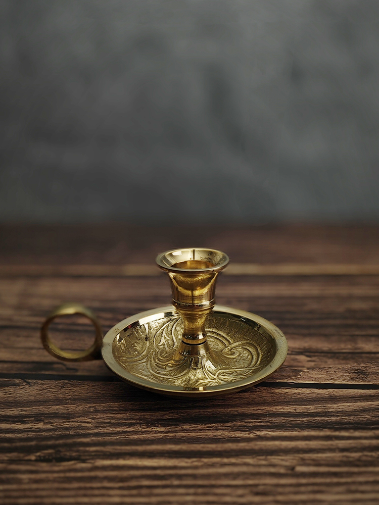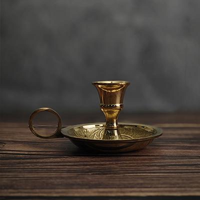 鲜花嵌贝壳黄铜烛台6.8**18.5cm