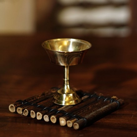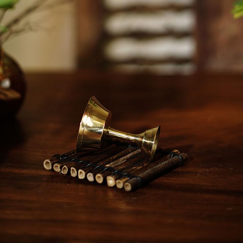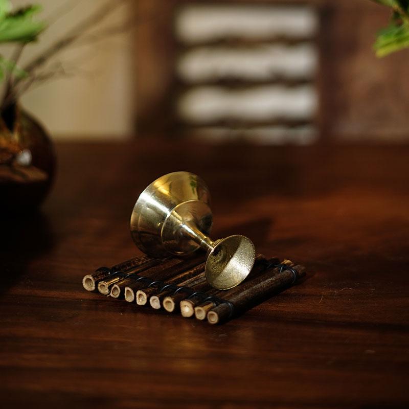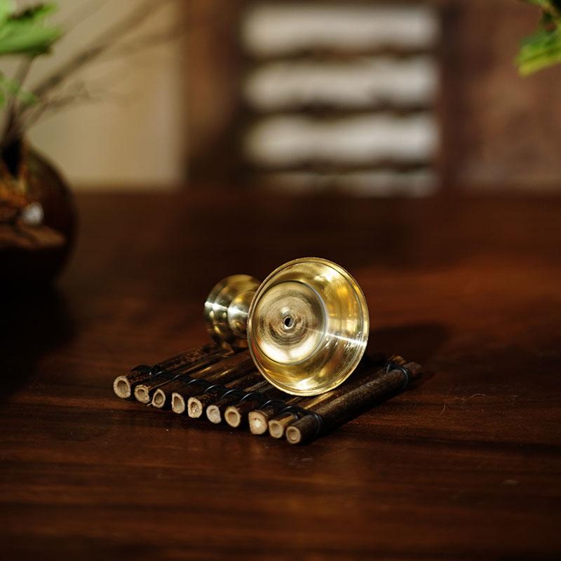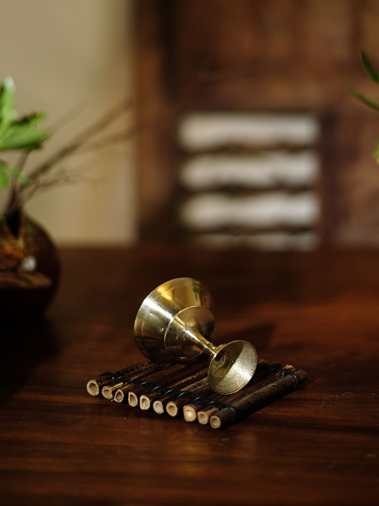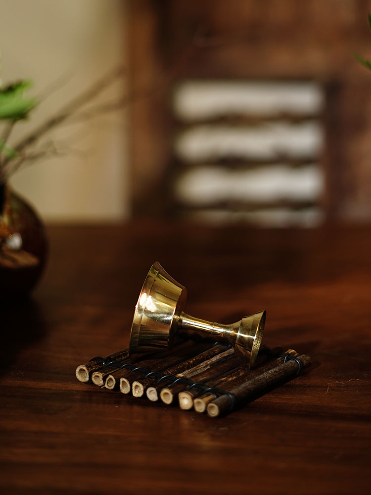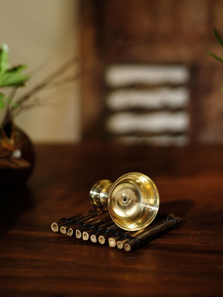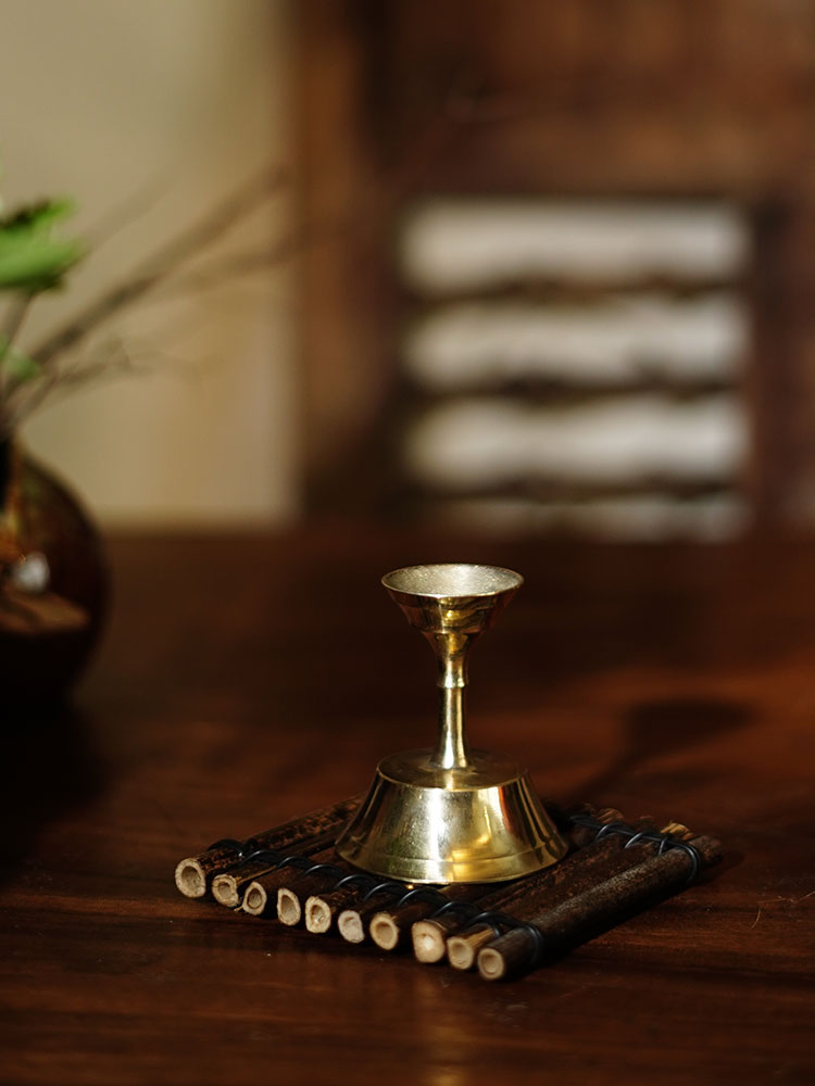 鲜花嵌贝壳黄铜烛台6.8**18.5cm