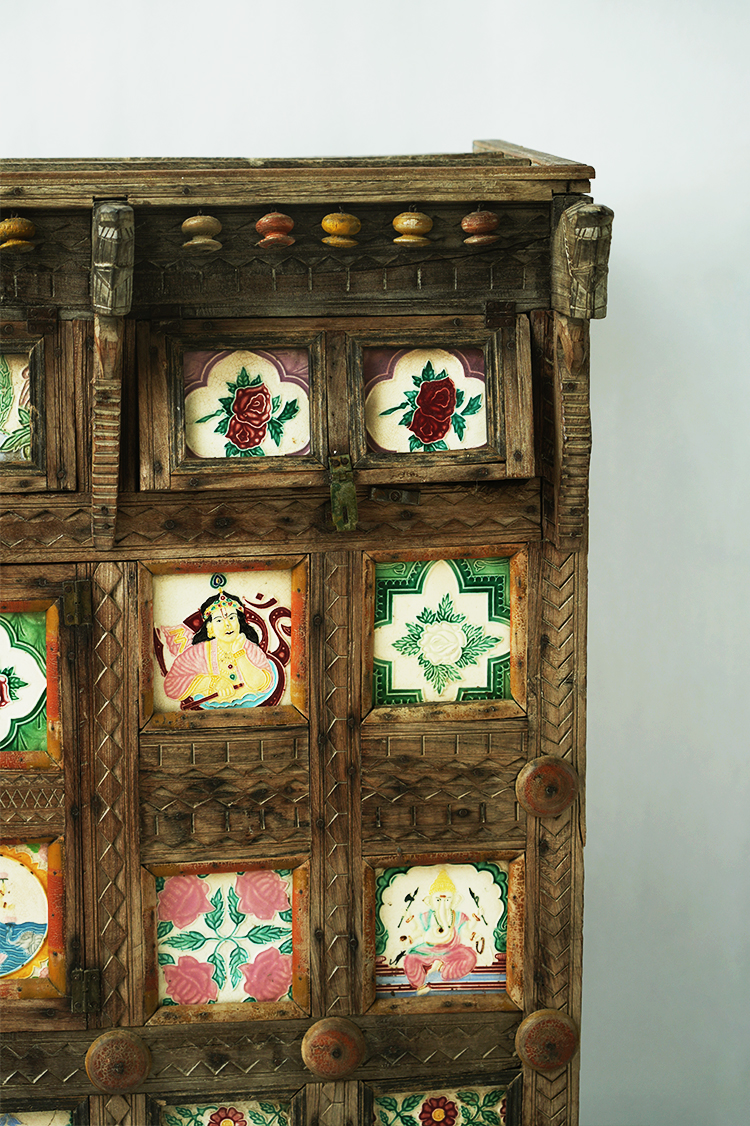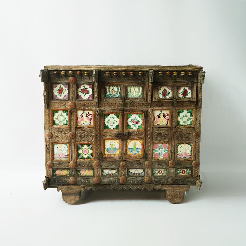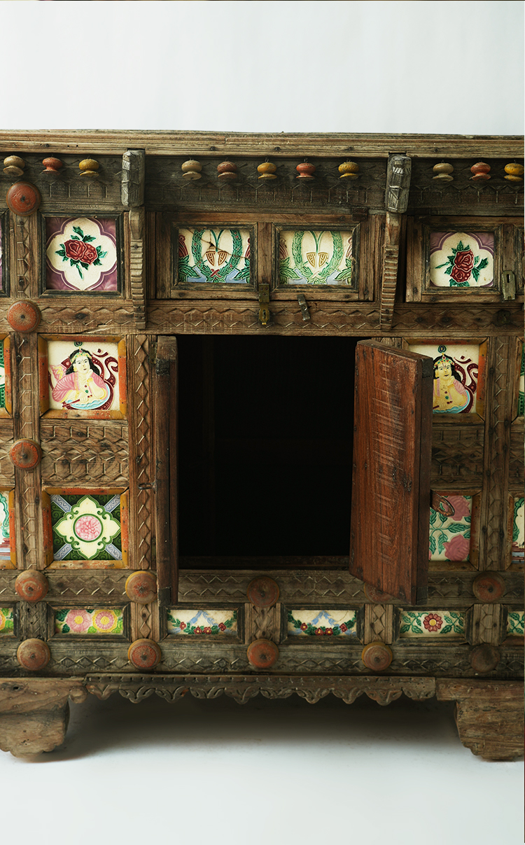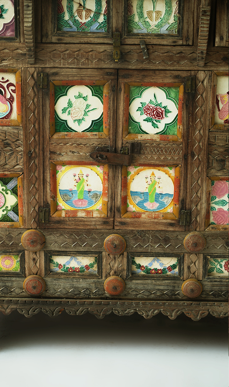 实木彩瓷边柜储物柜130*68*116.5cm