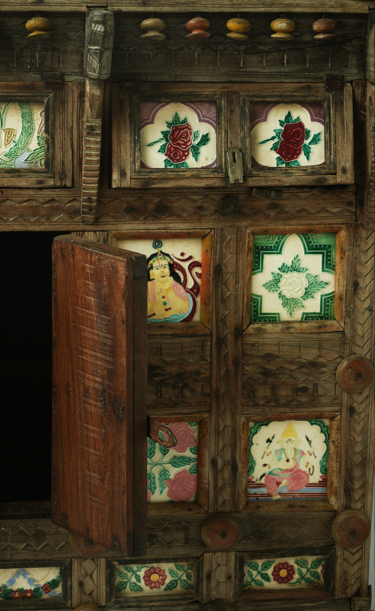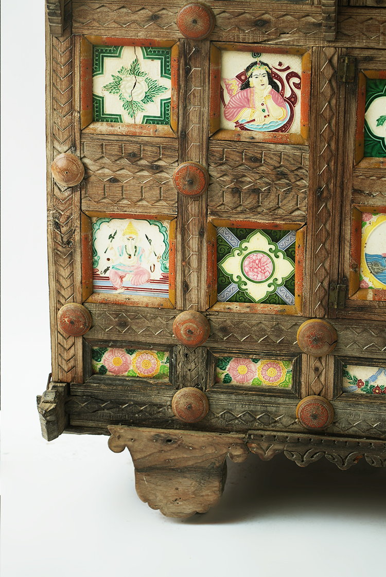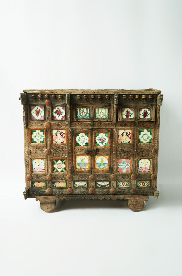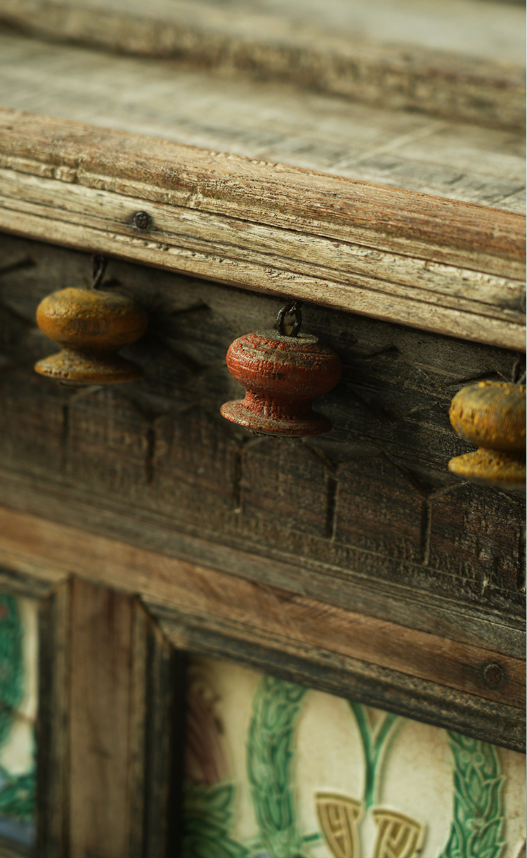 实木彩瓷边柜储物柜130*68*116.5cm