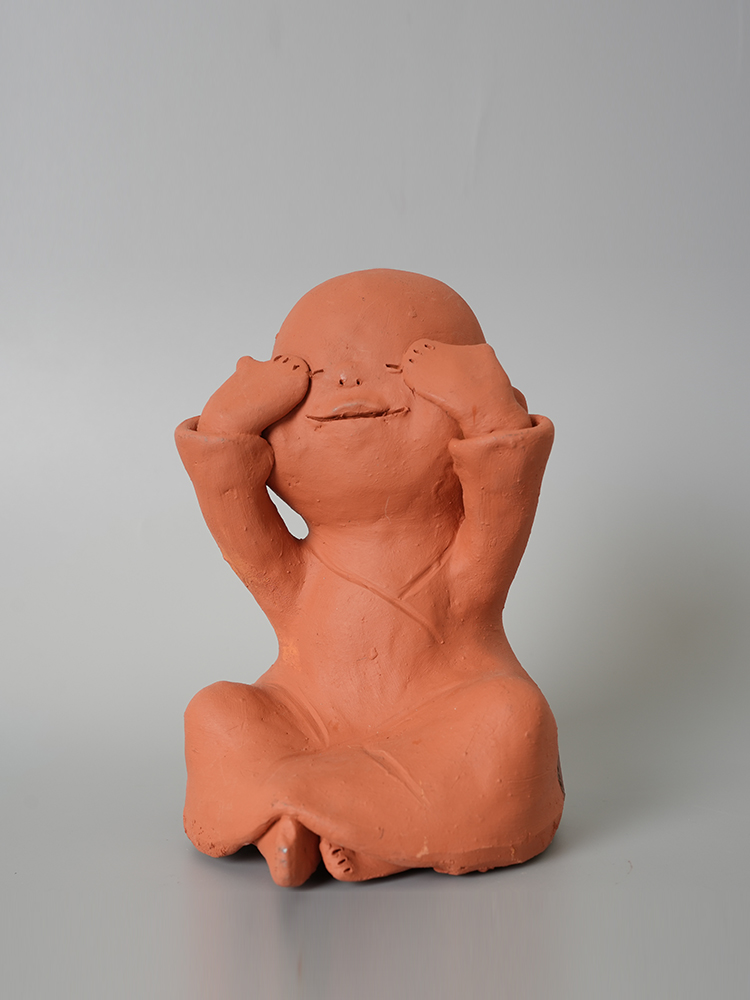 手工土陶摆件(娃娃)9.8*7.9*14.5cm