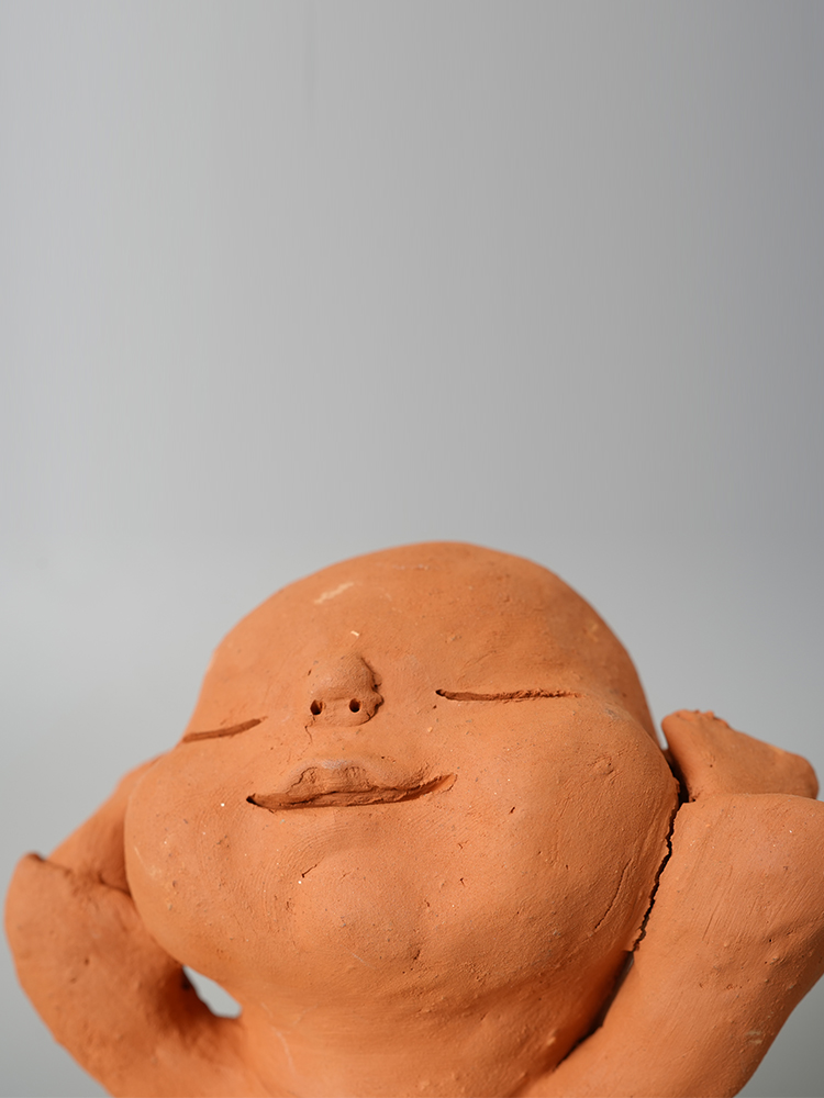 手工土陶摆件(娃娃)9.8*7.9*14.5cm