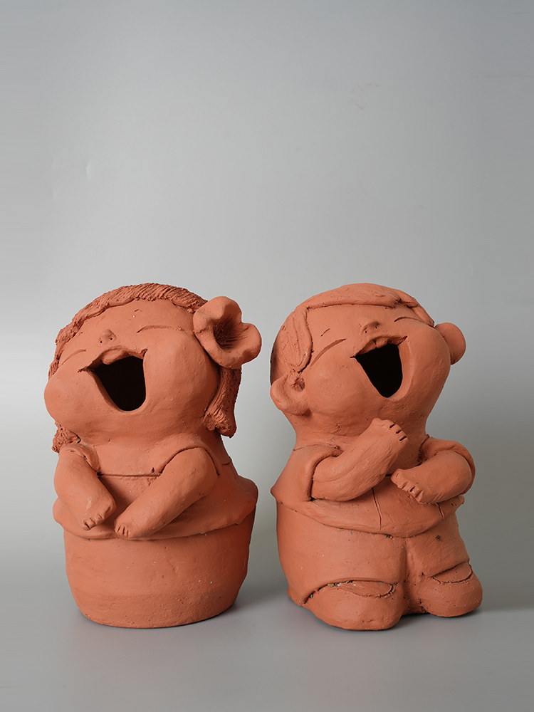 手工土陶摆件(娃娃)9.8*7.9*14.5cm