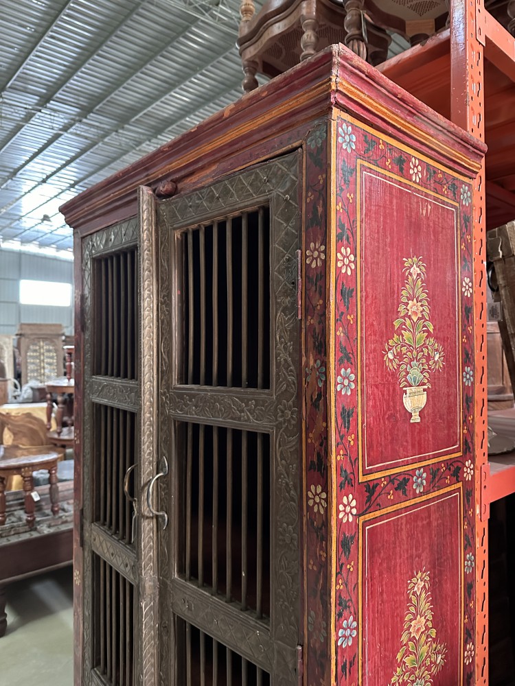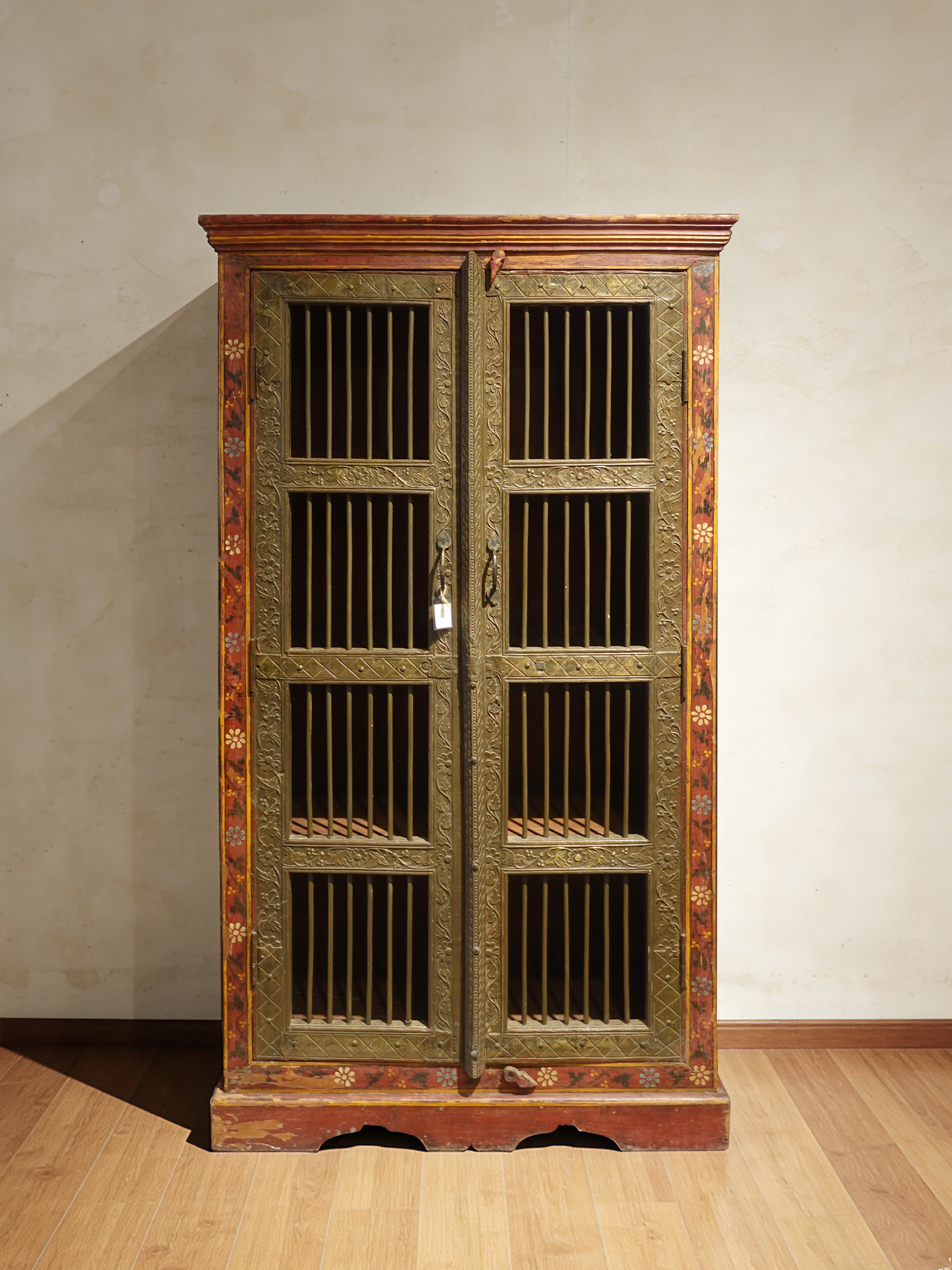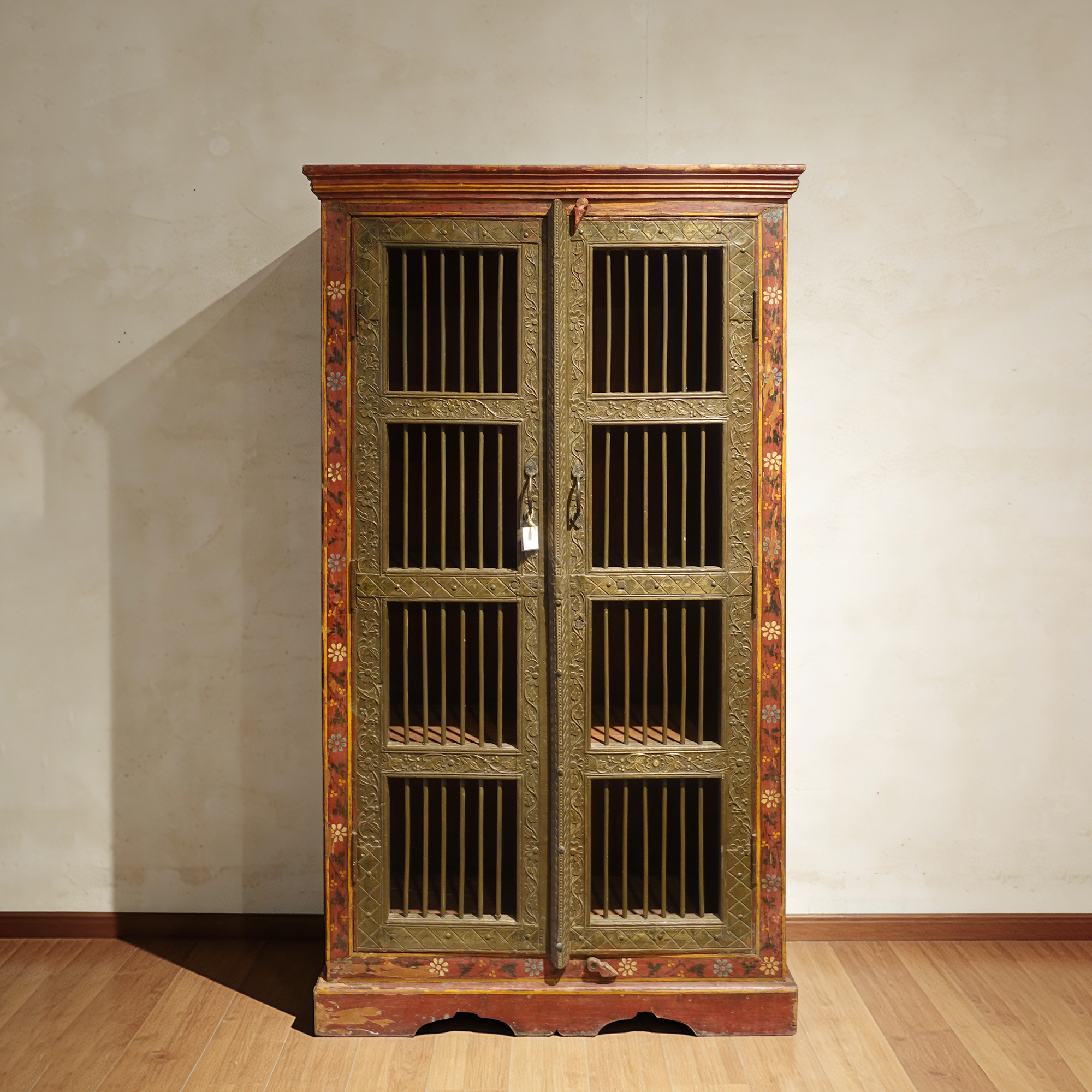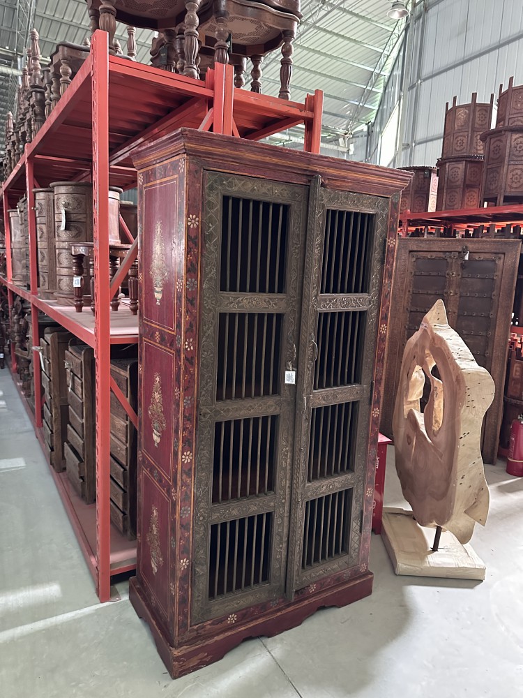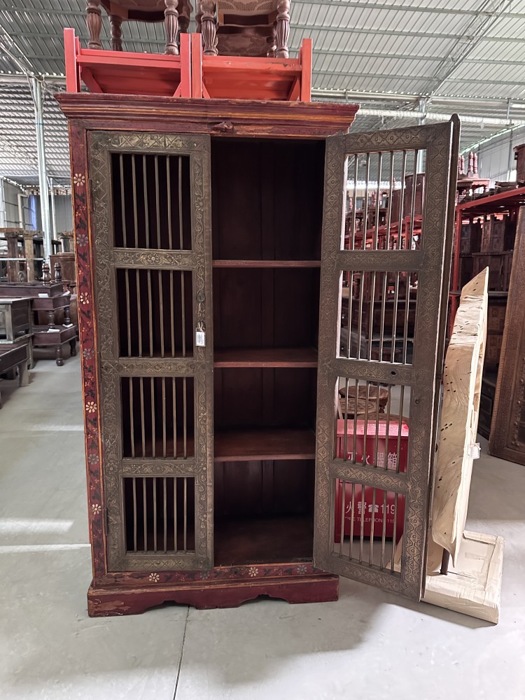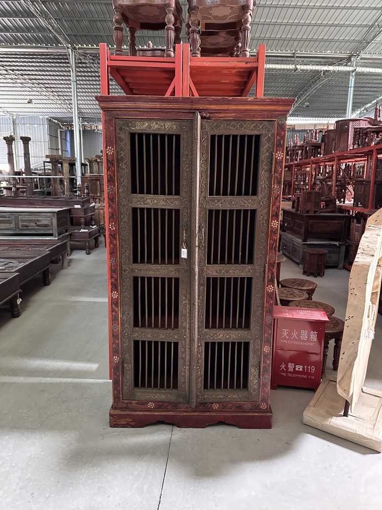 老木嵌铜片彩绘边柜储物柜衣柜95*48*182cm