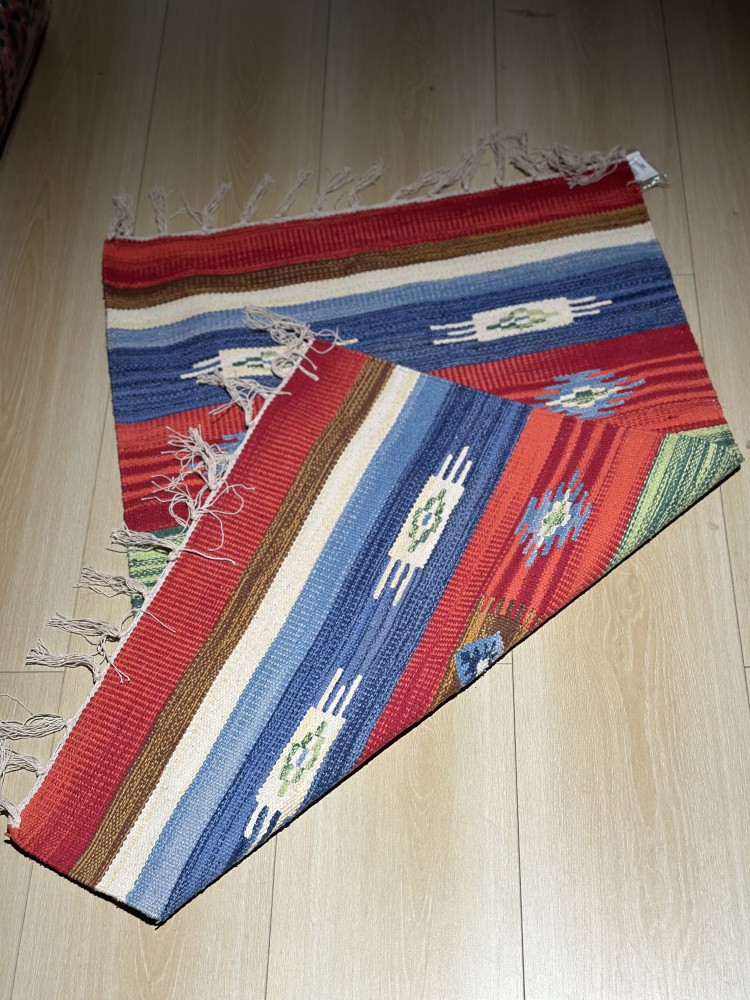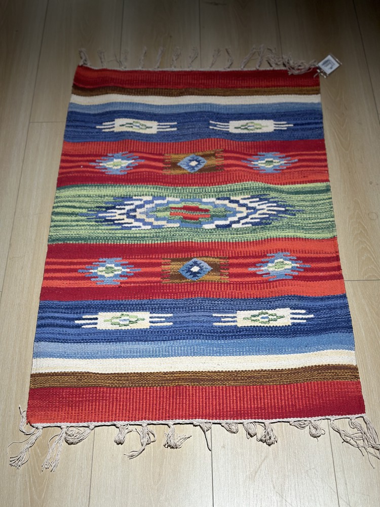 冥想毯瑜伽毯印度多用彩色棉编织地毯瑜伽垫桌旗搭毯90*60cm