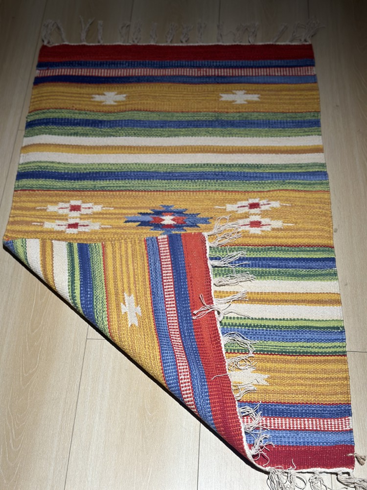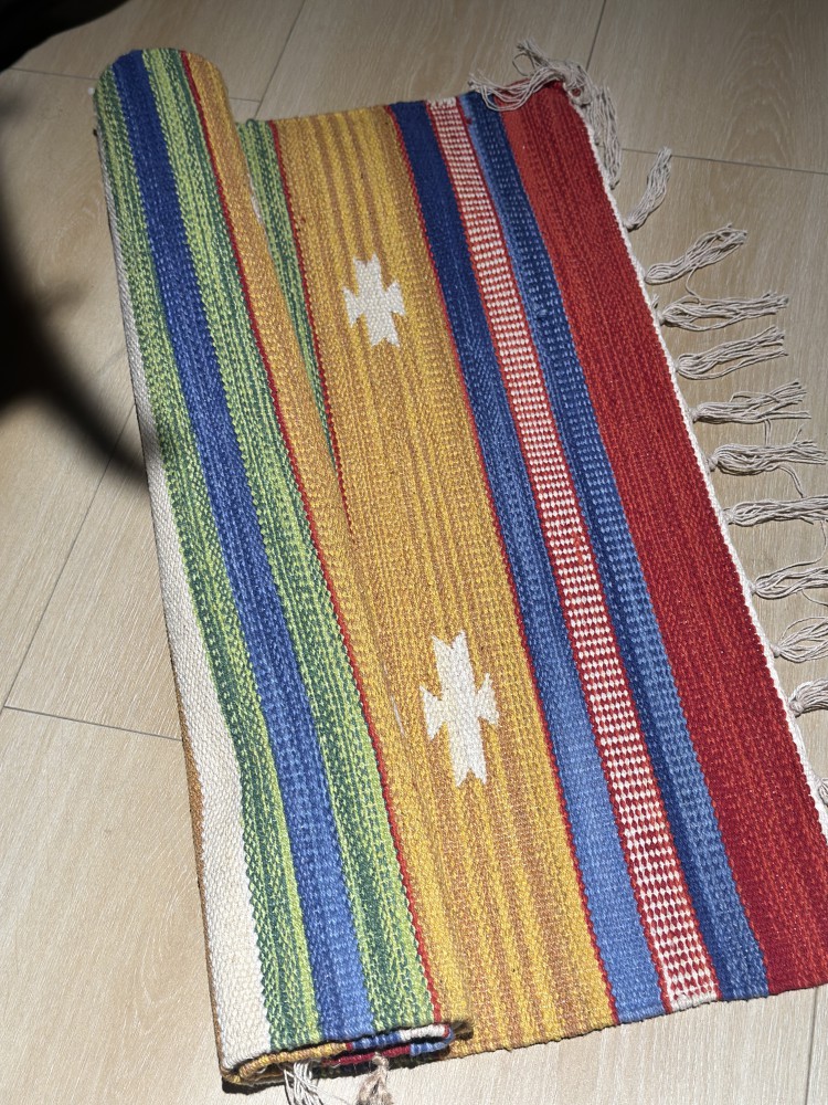 冥想毯瑜伽毯印度多用彩色棉编织地毯瑜伽垫桌旗搭毯90*60cm