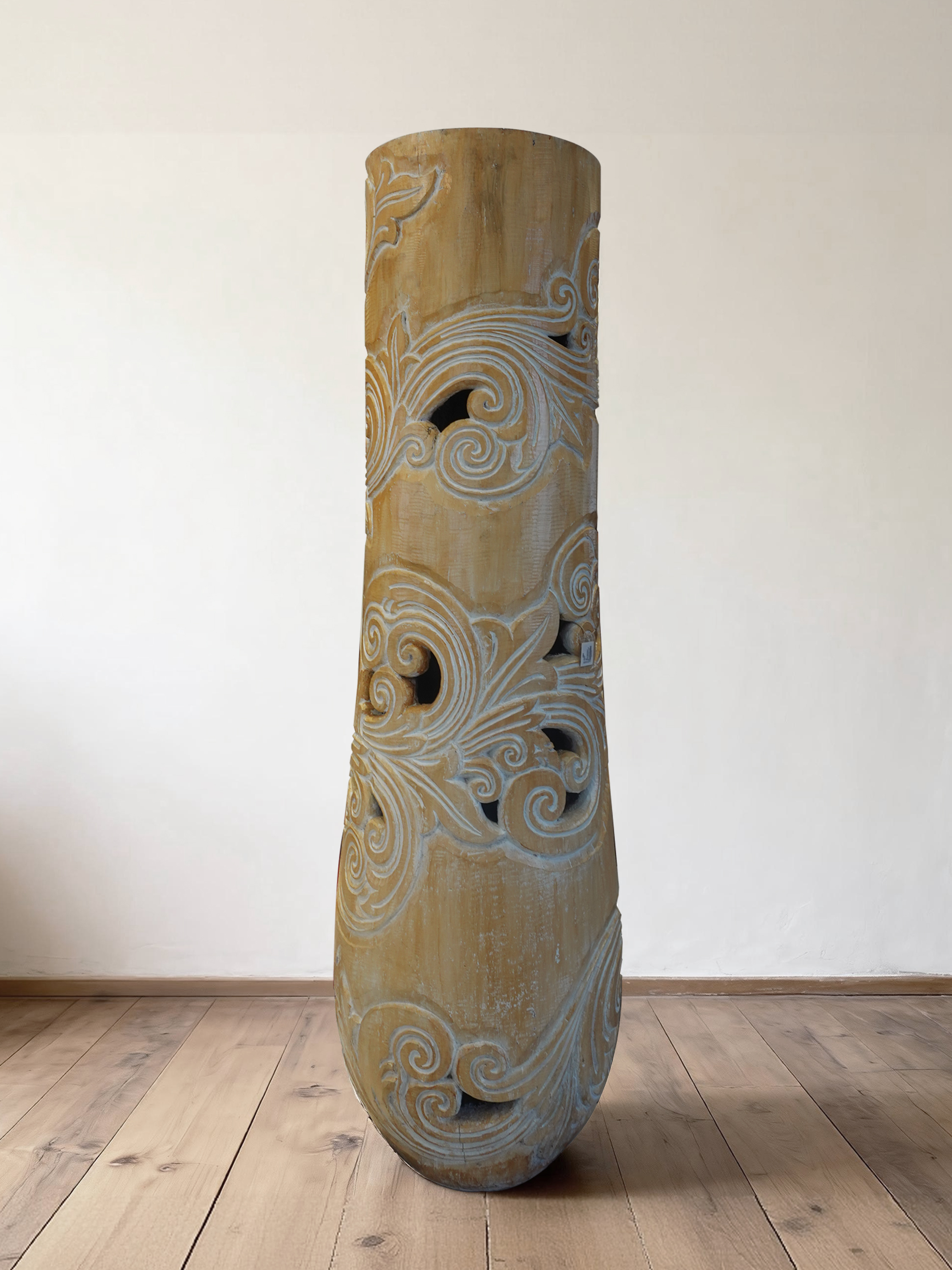 大王椰树木雕花瓶摆件37*149cm