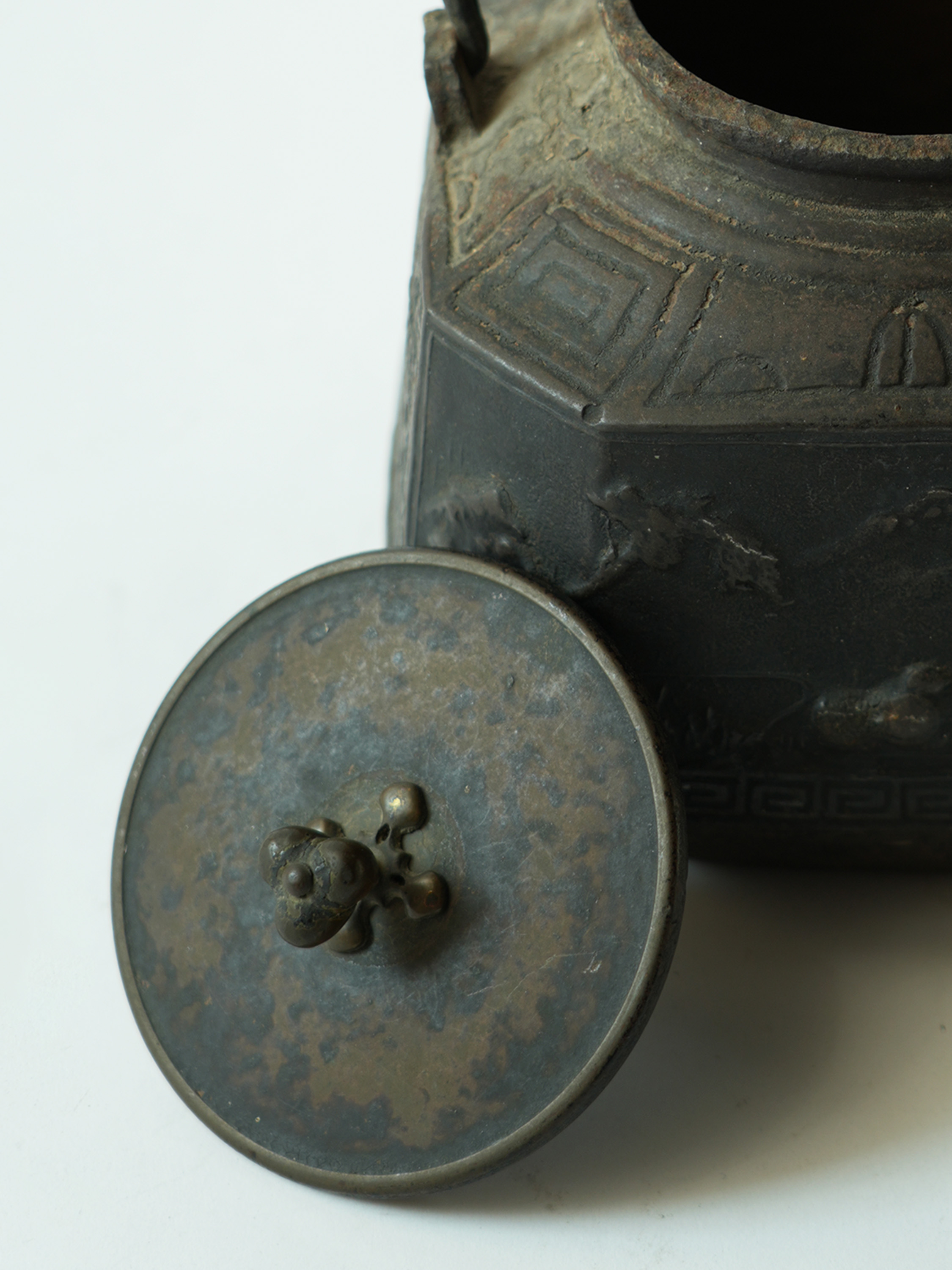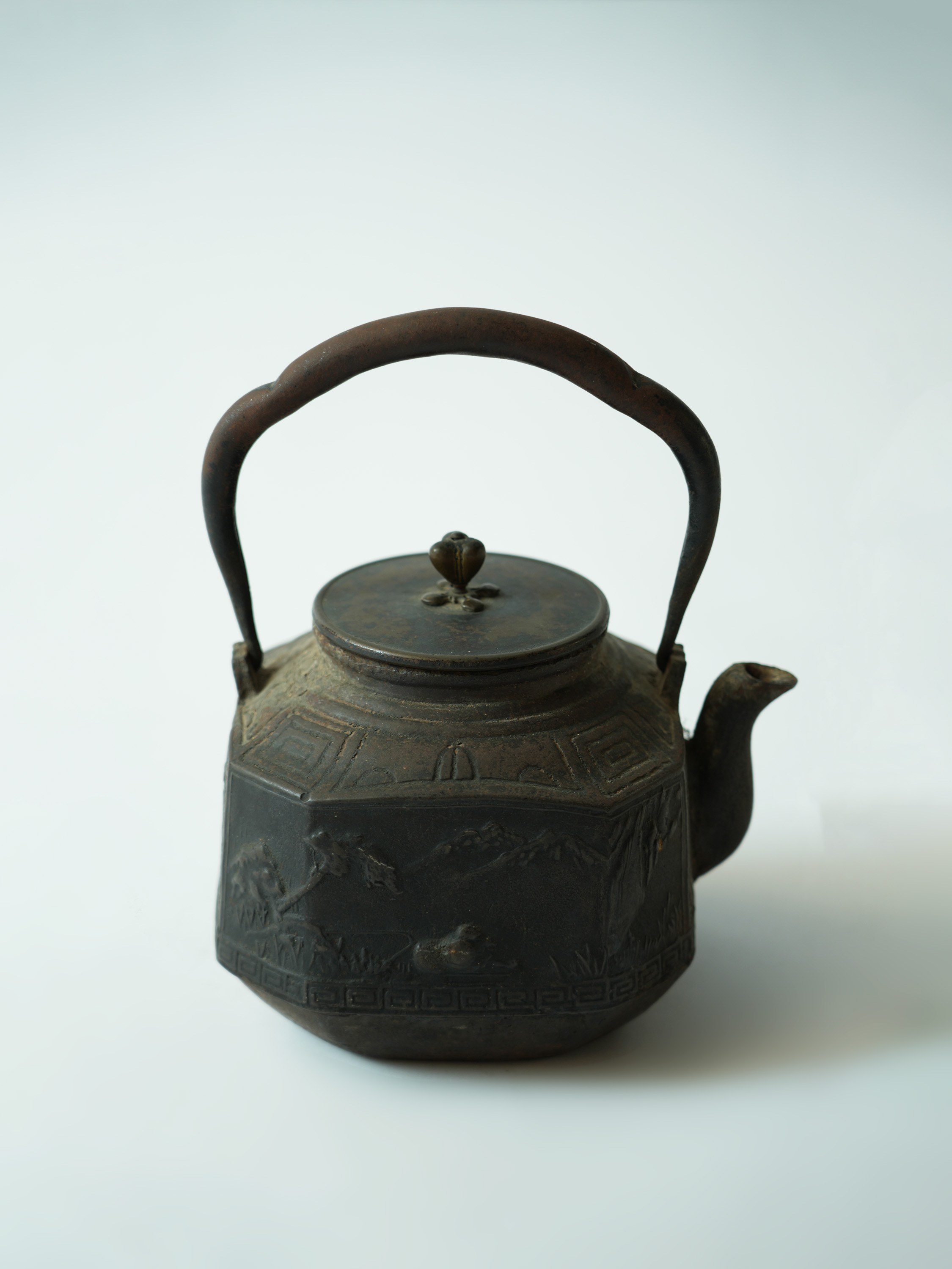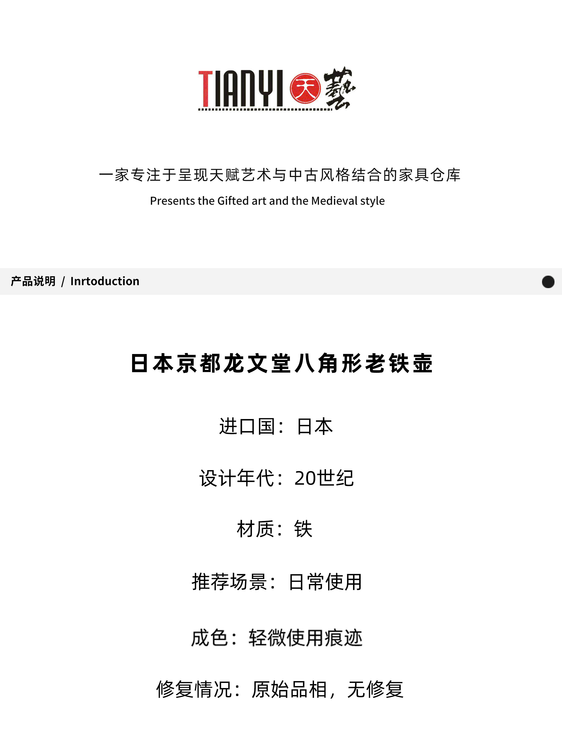 京都龙文堂八角形老铁壶18.5*15.5*23cm